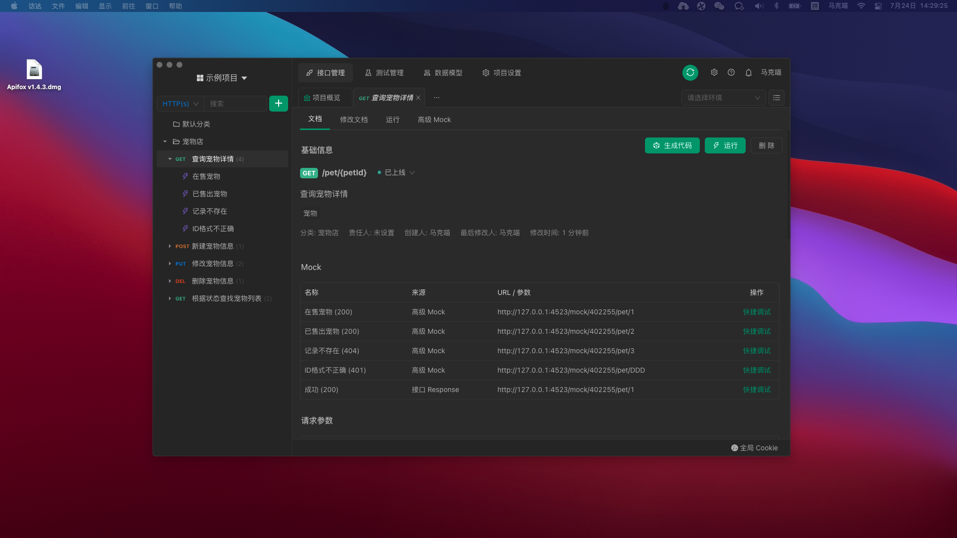Apifox 是一款适用于 Mac 的API接口调试应用。官方介绍 Apifox = Postman + Swagger + Mock。Apifox 可以用于接口文档、接口调试、Mock、自动化测试,可以帮助大大提升开发效率!