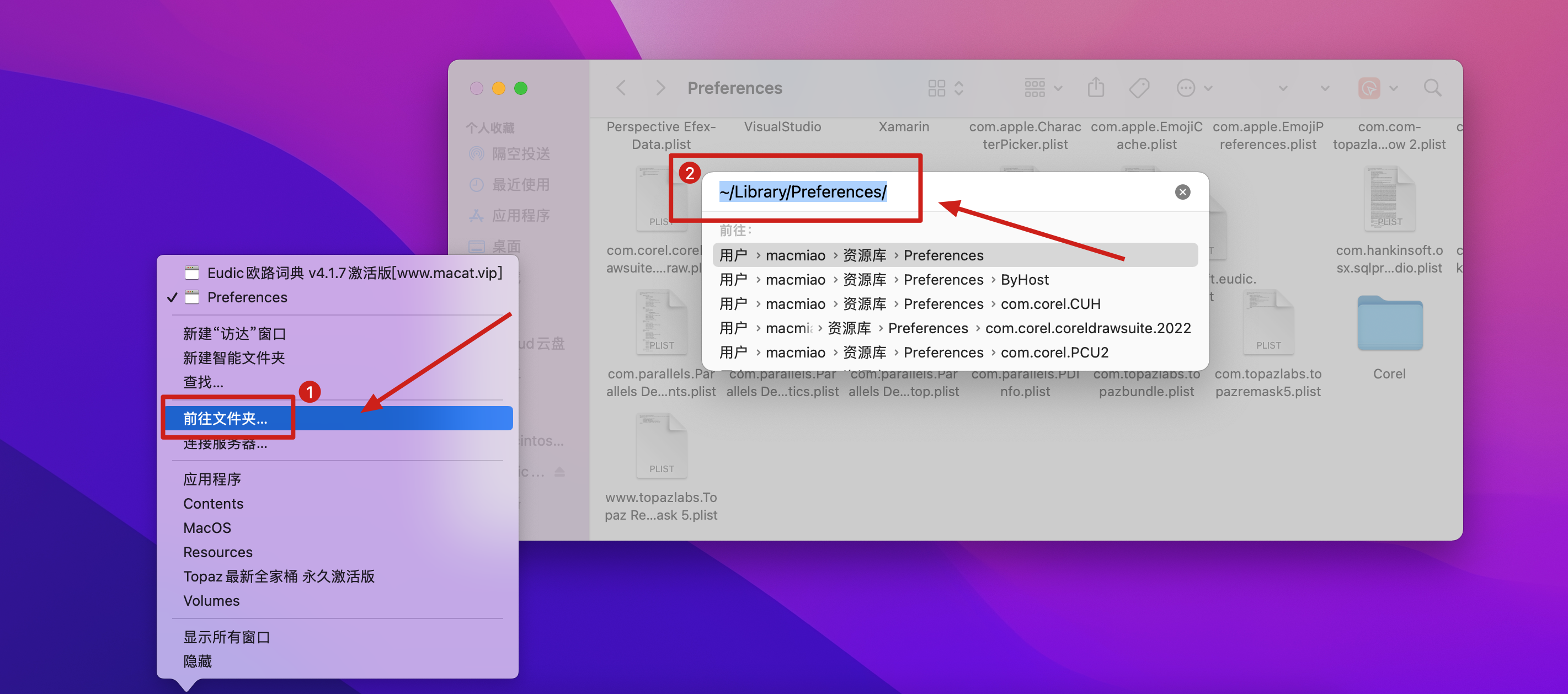 3.把镜像包中的com.eusoft.eudic.plist拖到Preferences文件夹中