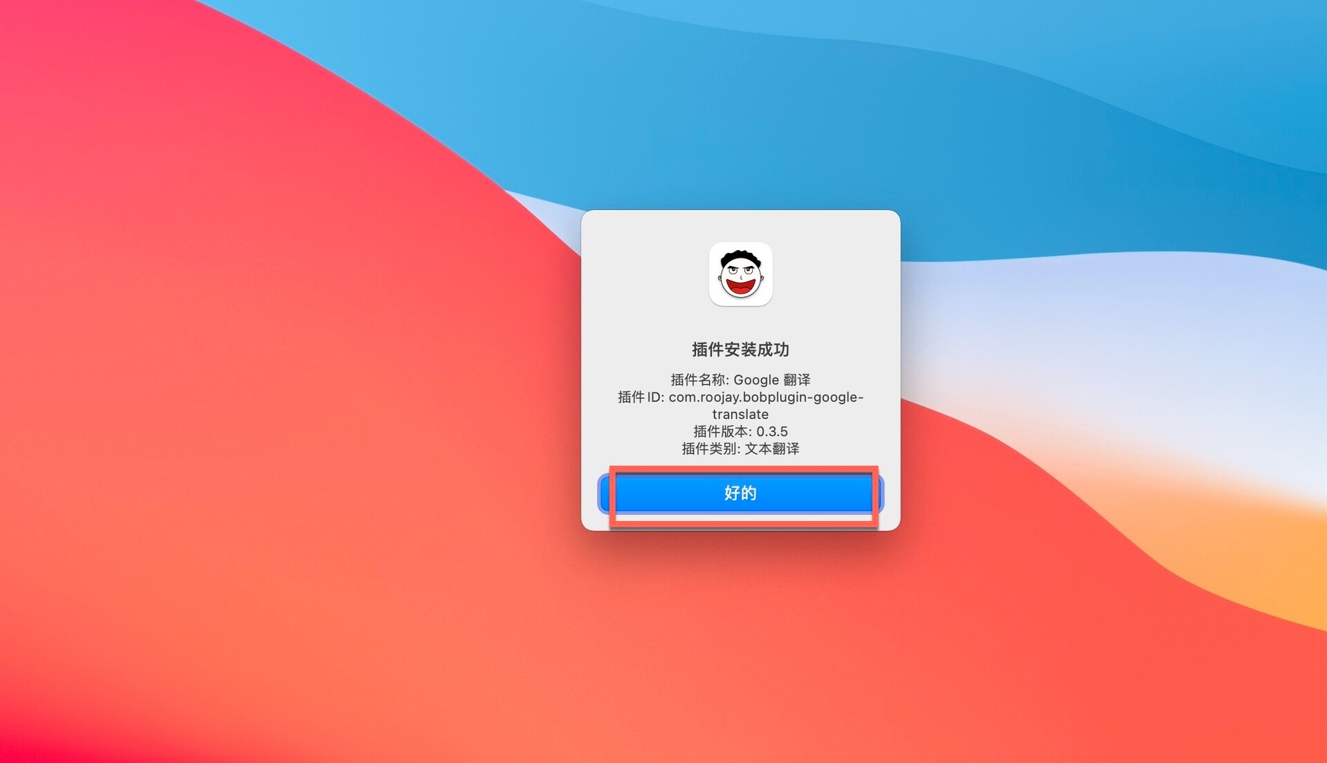 提示安装成功。点击好的