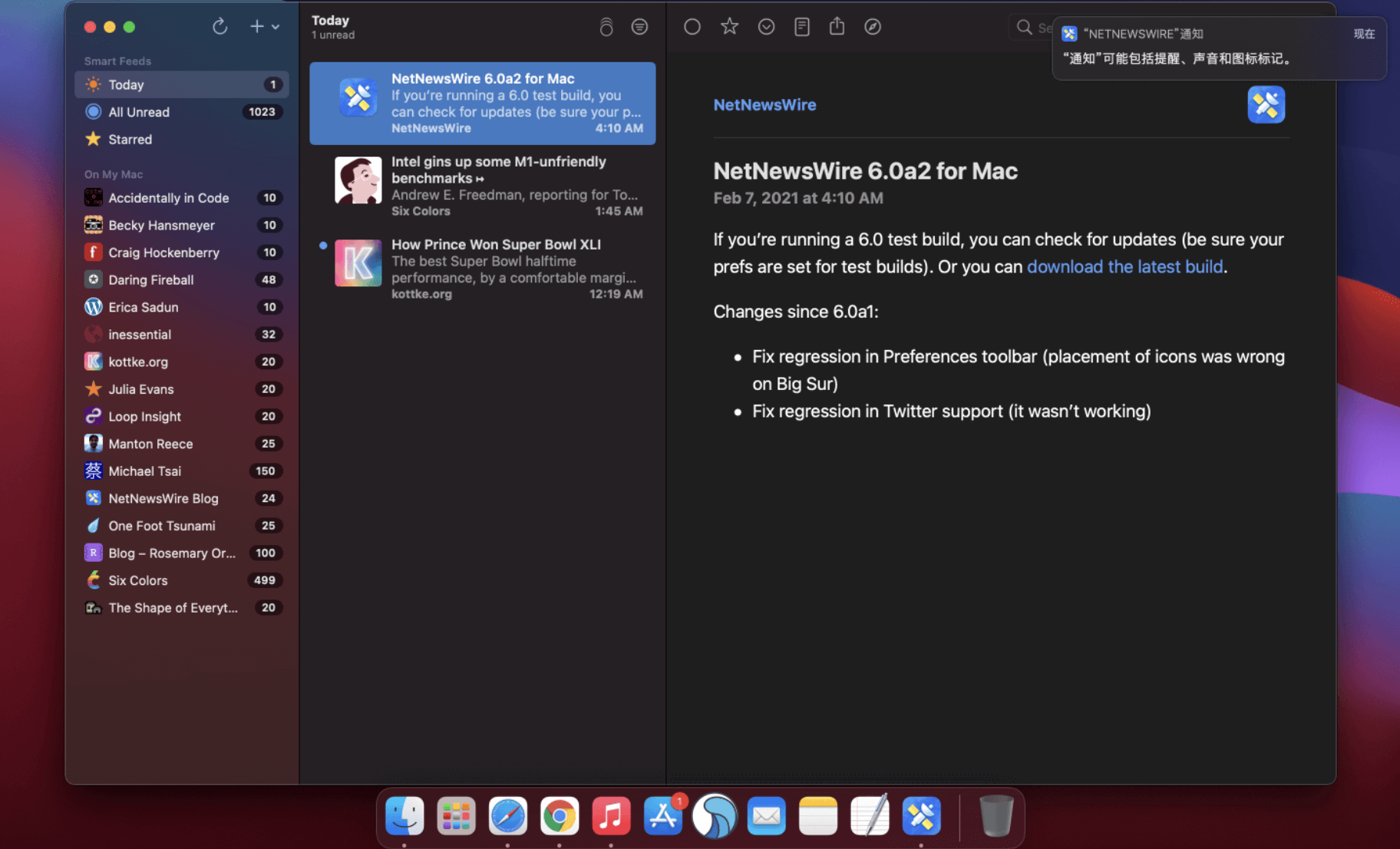 NetNewsWire 是一款开源免费的 RSS订阅器,支持Safari扩展程序,可轻松添加Feed订阅,支持通过Feedbin同步,共享到邮件,MarsEdit,Micro.blog,便笺,消息等,支持AppleScript。
