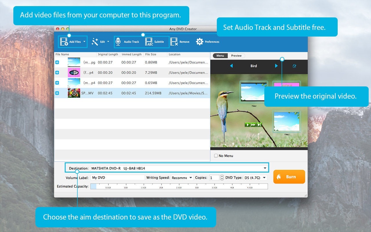 - 将MP4,AVI,FLV,MOV等(包括高清视频)的视频刻录到Mac上的DVD光盘/文件夹/ ISO文件
