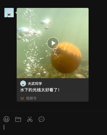 在 Mac 微信 2.6.1 版本中,如果收到一条视频号的视频转发,只会显示一段文字提醒不支持查看此消息;