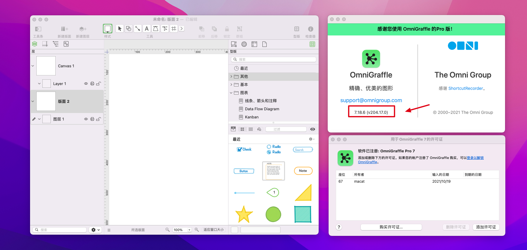 OmniGraffle 7 Pro for mac 中文破解版可以用来绘制图表,流程图,组织结构图以及插图,也可以用来组织头脑中思考的信息,组织头脑风暴的结果,绘制心智图,作为样式管理器,或设计网页或PDF文档的原型。它具有采用拖放的所见即所得界面。所谓的”Stencils”—一组用于拖放的形状—可以作为 OmniGraffle Pro 7 的插件使用,用户也可以创建自定义的Stencils。