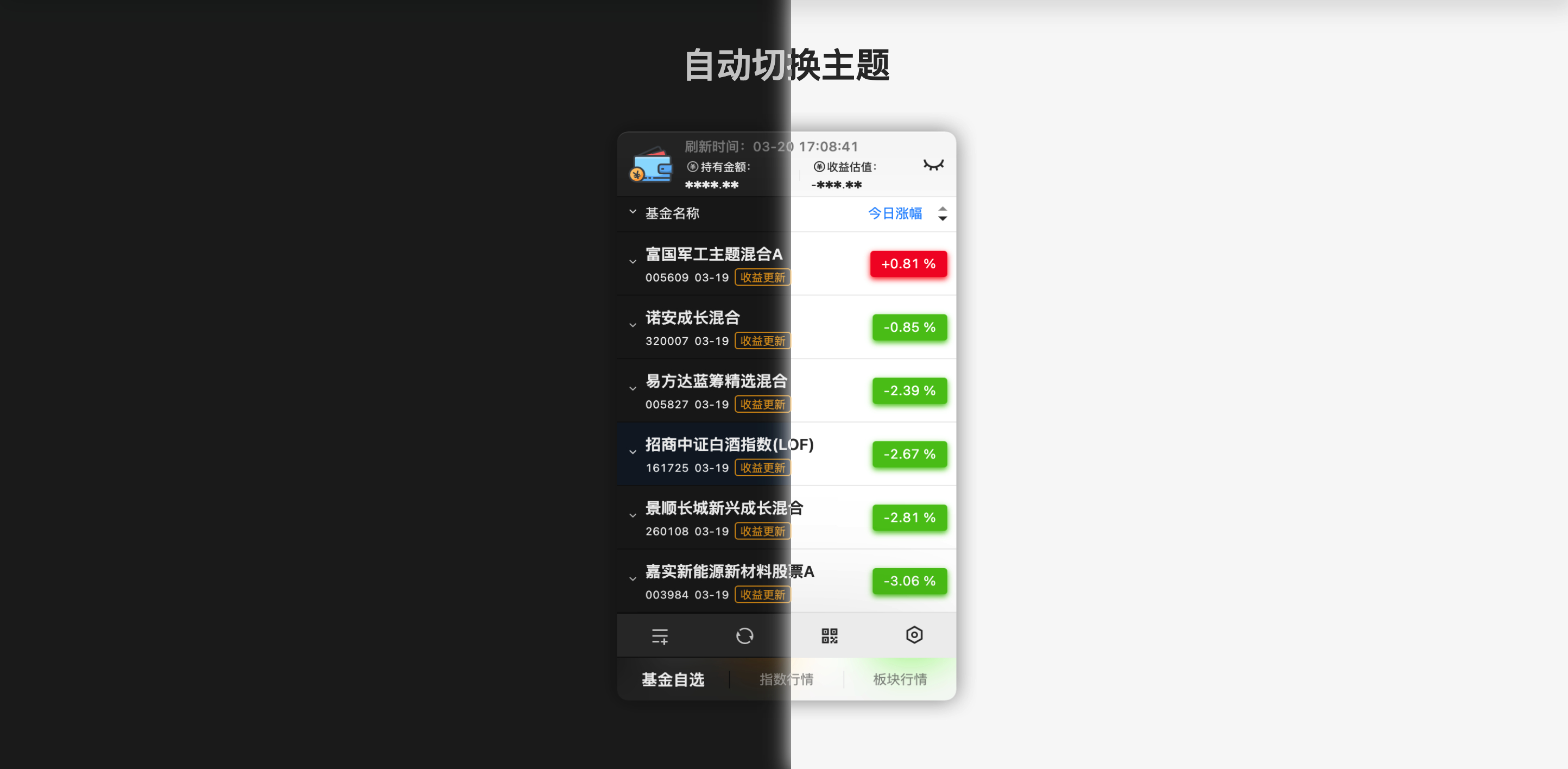 搜集到的Fishing Funds for mac 4.1.0 是一款阿鑫大佬开发并开源的基金涨跌情况显示小应用,用天天基金等数据源接口,实时显示当前基金涨跌情况,