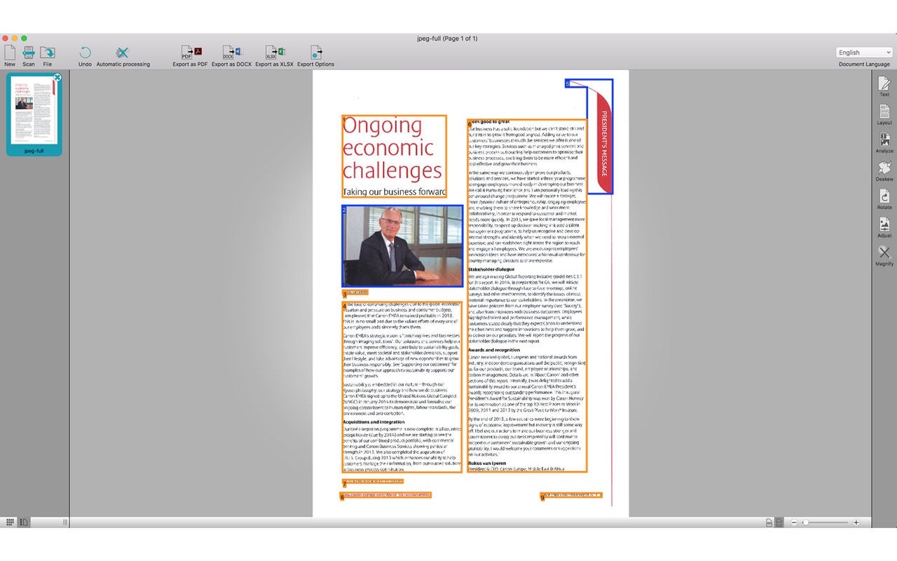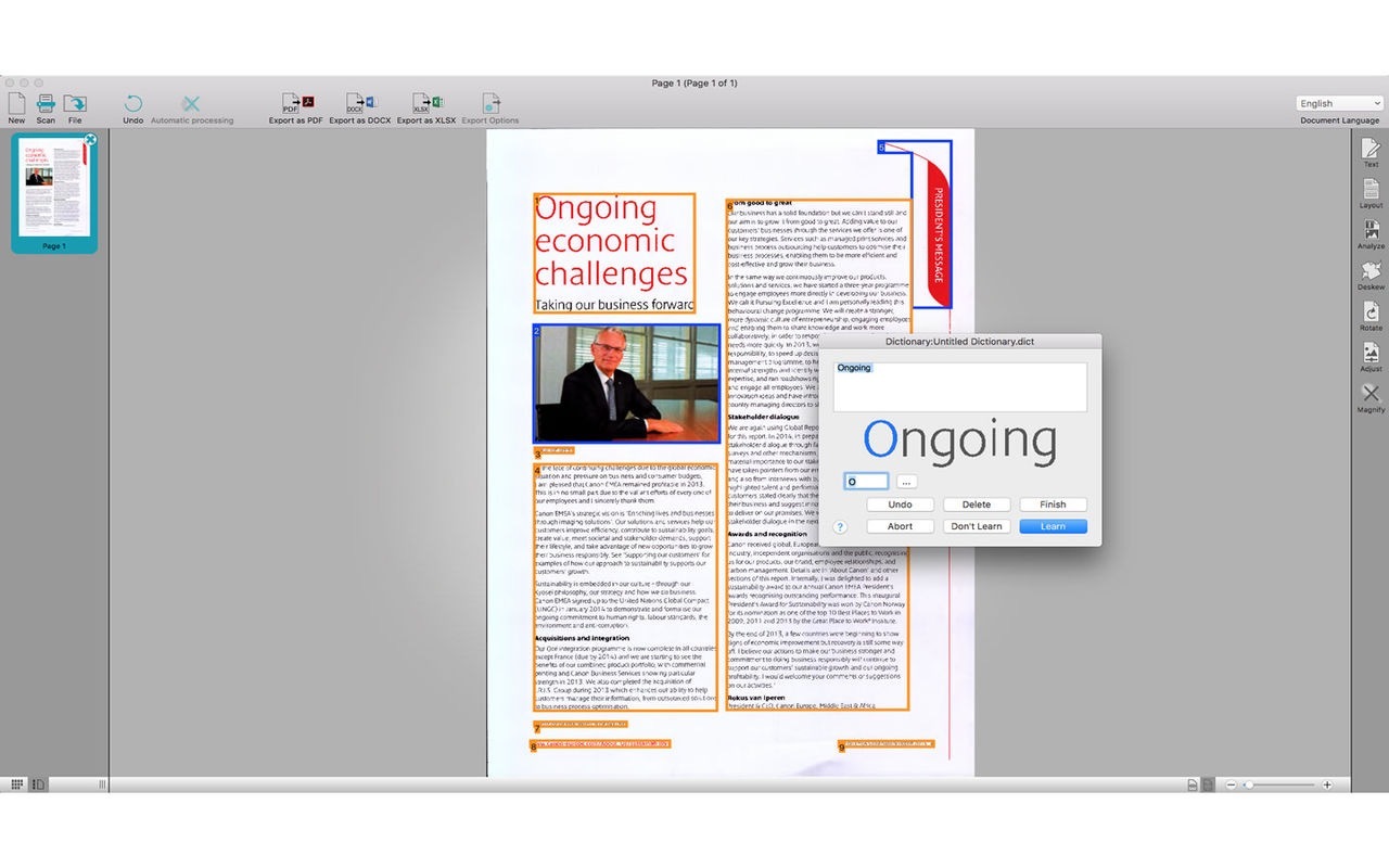 Readiris Corporate是搜集到的一款OCR 图片文字识别工具,它是用于OS X的功能最强大,最准确的OCR软件。它可以准确快速地将纸质文档,PDF和图像文件转换为可编辑的信息。