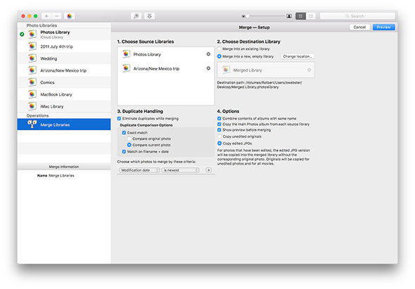 有一大堆你想合并成一个的库?PowerPhotos可让您将库合并在一起,同时在流程中清除重复的照片。在完成任何修改之前,您将可以预览合并库的外观,以确保您的合并库看起来完美。
