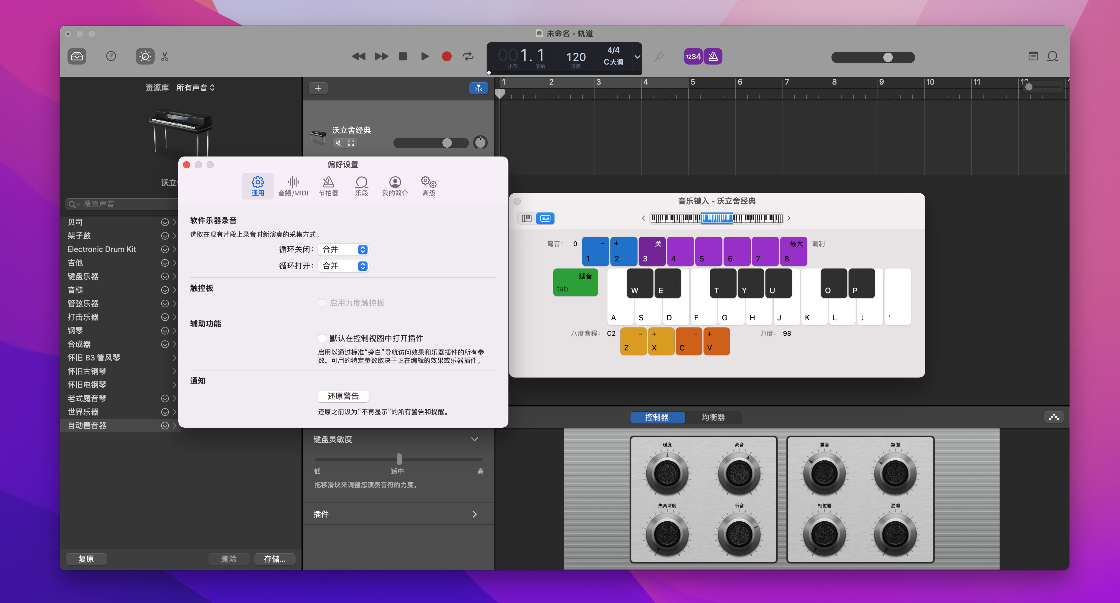 想要GarageBand作曲录音乐,使用GarageBand for Mac,包括了1000段预录的样本旋律和50种合成乐器样本,并能用连接电脑的MIDI键盘或屏幕键盘演奏。