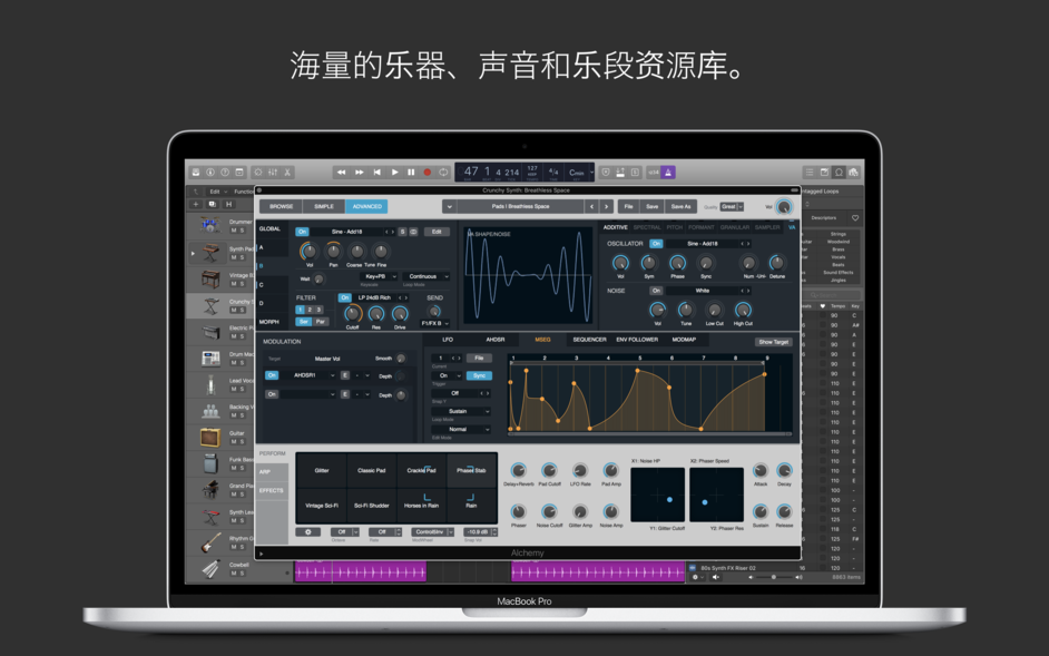 ・通过终极样本处理合成器 Alchemy,快速查找声音或创建独一无二的新声音