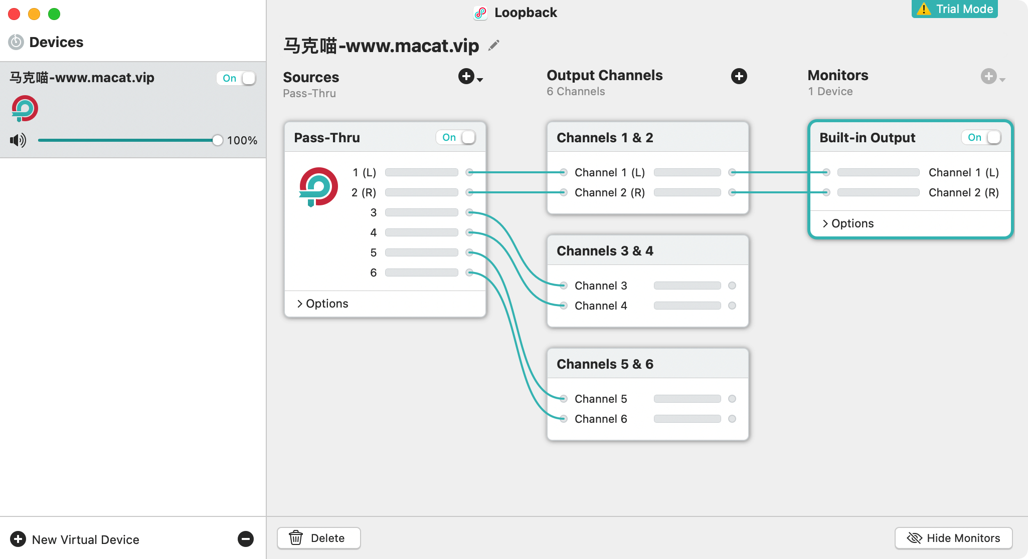Rogue Amoeba Loopback 是一款适用于Mac的应用程序之间相互传递音频的工具。创建虚拟音频设备以从应用程序和音频输入设备获取声音,然后将其传递给任何音频处理软件。
