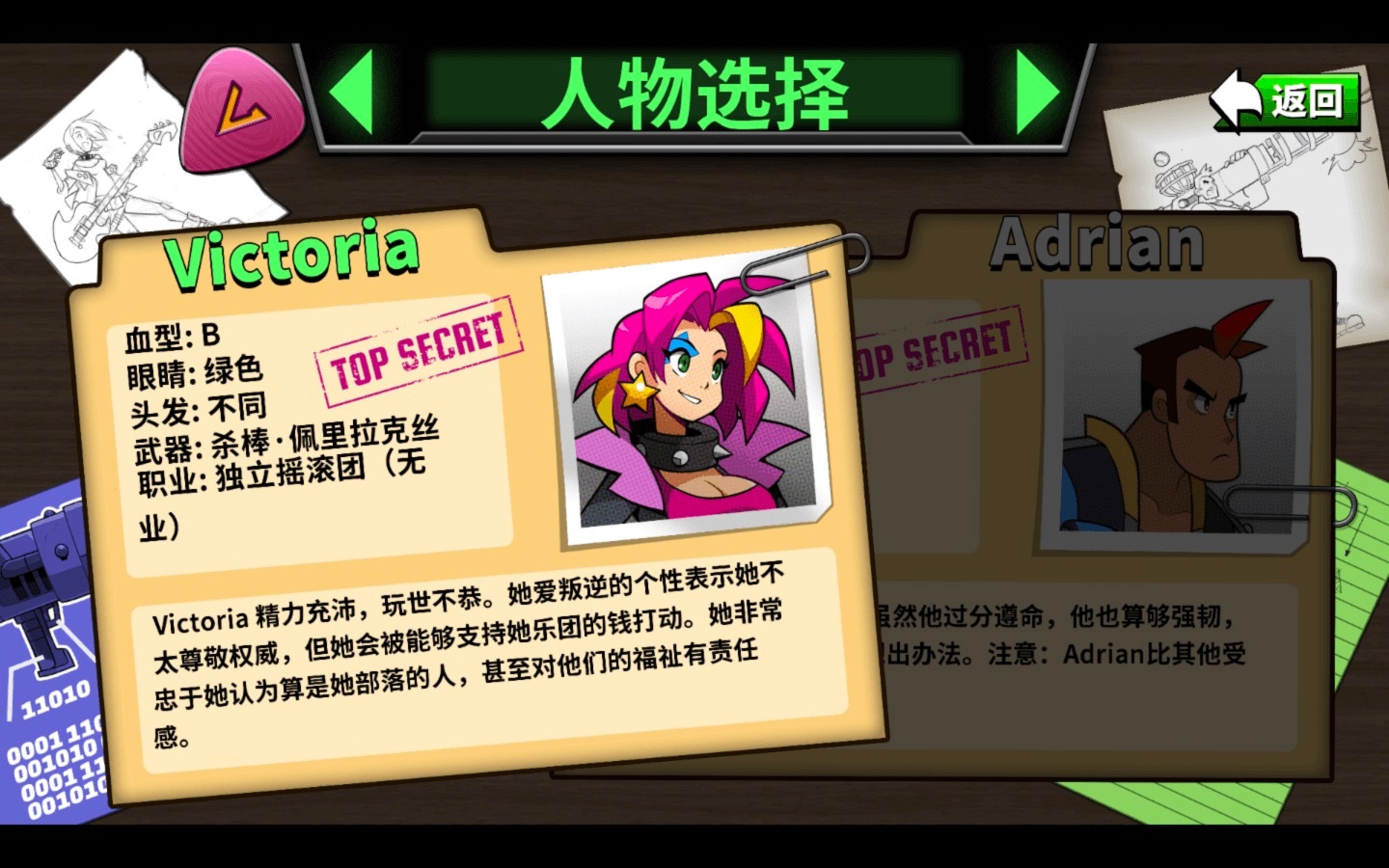 - 使用两位独特的人物玩游戏:朋克摇滚手Victoria和警察训练生,Adrian!