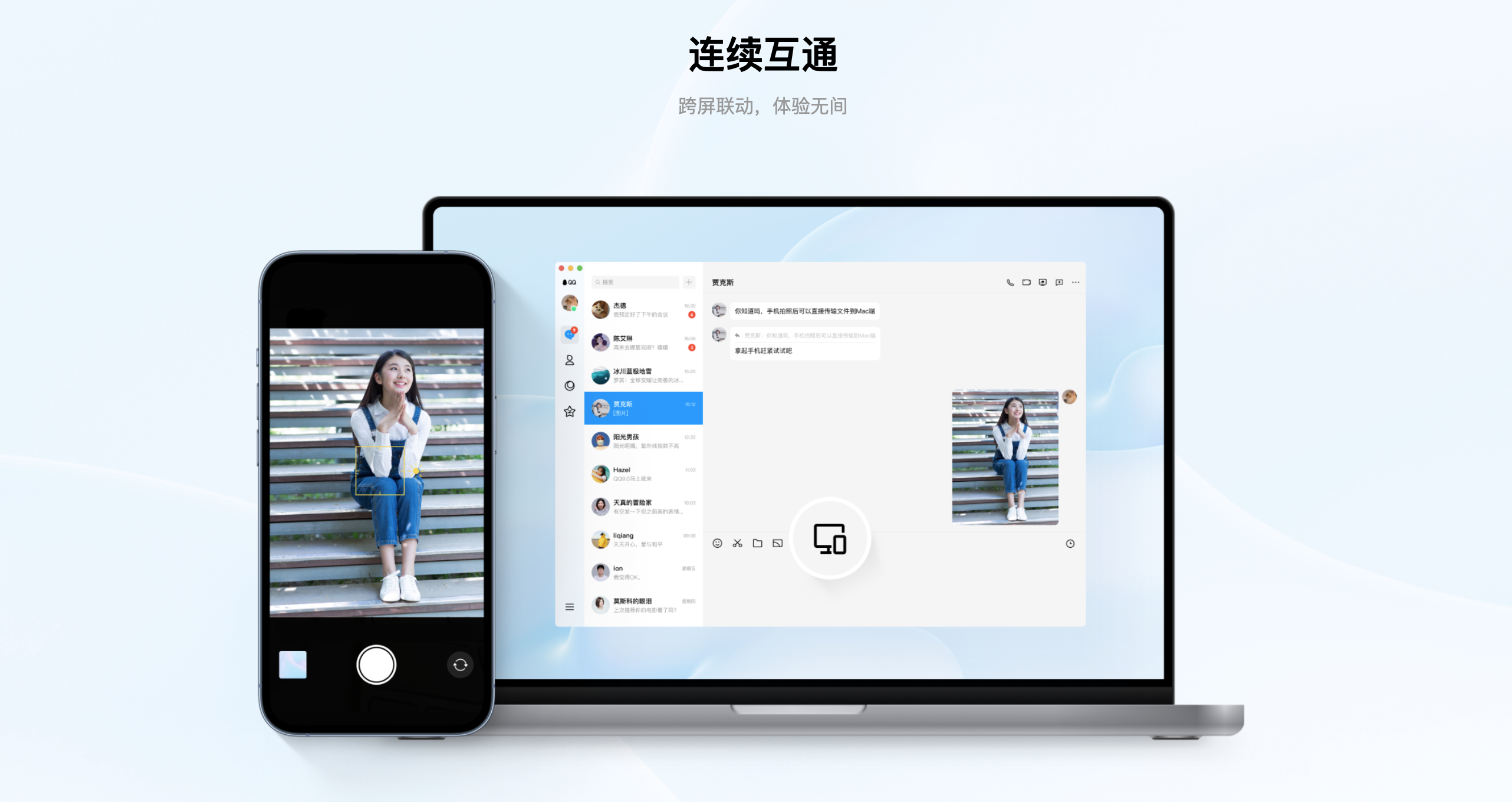 新版本还支持连续互通能力,当识别到当前有可以使用的移动设备时,用户可以启用移动设备的摄像头进行拍照或扫描,随后便会展示在 QQ 聊天框内,如果你有编辑绘画的需要,也可将速绘快速添加至输入区,省去了之前单独传输的步骤。