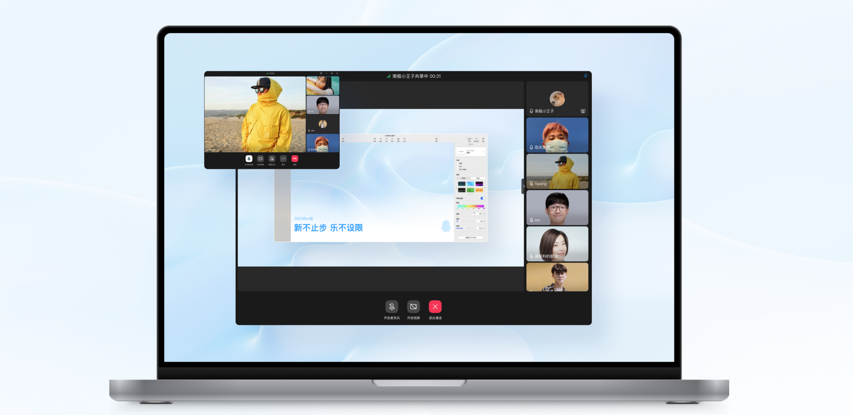 新版QQ还支持音视频实时共享给好友,Mac版的电脑屏幕共享功能终于来了,远程帮小姐姐修电脑完全不是问题了。