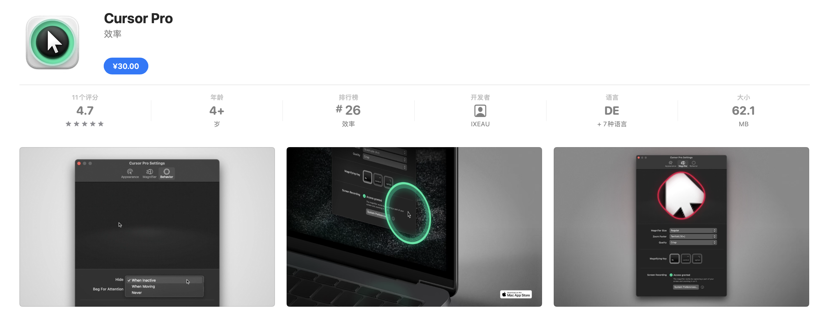 - 拥有大屏幕甚至多个显示器。丢失指针是我们许多人经常发生的事情。Cursor Pro 将确保您始终知道指针的位置。