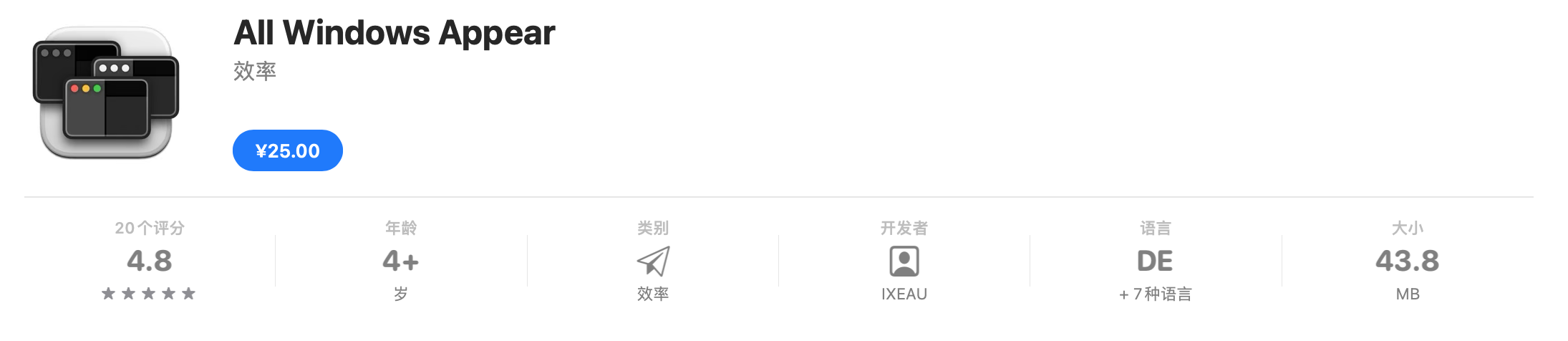 All Windows Appear Mac破解版是一款macOS平台的一键显示当前应用程序下的所有窗口,如果启用了“出现所有Windows”,则聚焦窗口将使该应用程序的所有相关窗口也都处于旧版macOS的前面。测试环境:MacOS 12.5.1