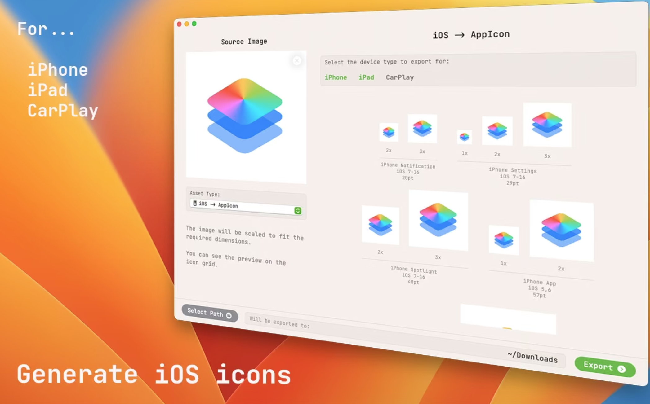 - 为 iPhone、iPad 和 CarPlay 生成应用程序图标