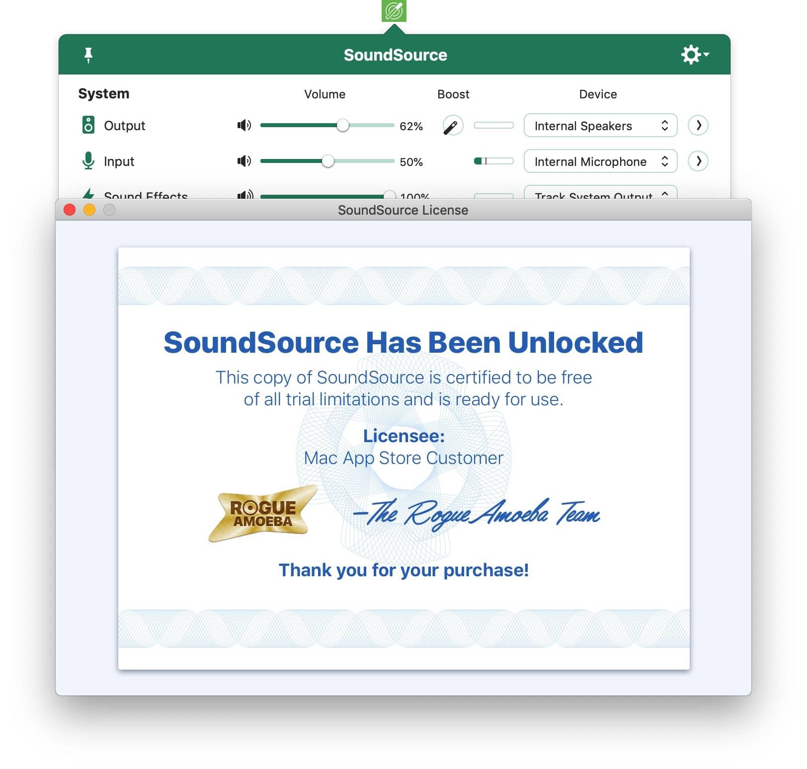 SoundSource for Mac是一款简单易用的快速切换Mac音频输入和输出源的工具。一个基于菜单栏的实用程序,可让您即时访问输入,输出和系统设备以及音量设置。帮助您通过菜单栏分别控制每个音源的音量。作为一个附加优势,还为您分享了一个快速访问完整声音偏好设置窗格的方法。