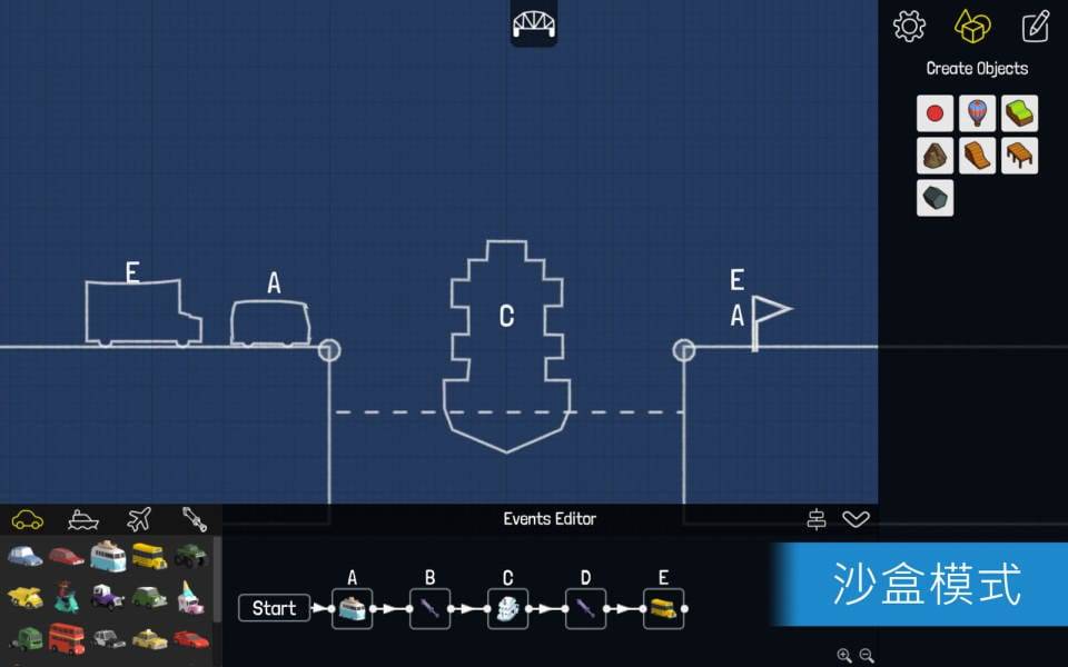 闯关过程中您将体会到解决物理学难题的乐趣,甚至还可以切换为沙盘模式,创建属于自己的桥梁设计及关卡!您可以让您的好友及其他玩家们挑战您设计的关卡,也可以下载其他玩家提交的更多关卡。