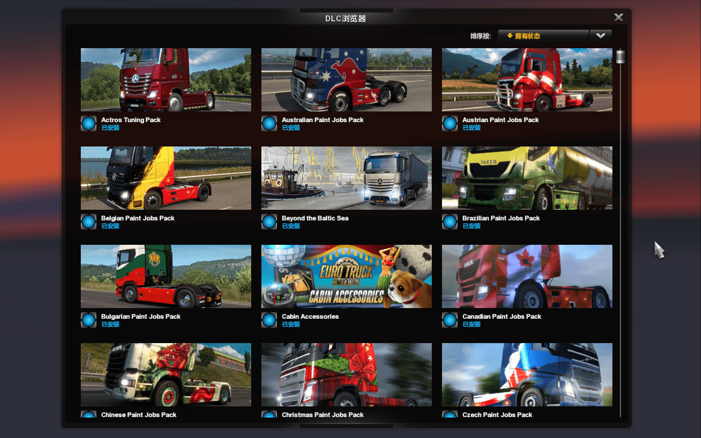 包含了截止该版本更新为止所有的DLC共70个(如截图)