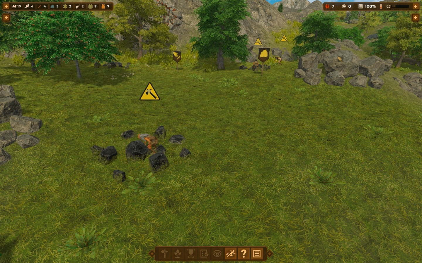 从周围环境中收集各种资源:水果、浆果、水、木材、燧石、原石以及矿石。利用这些资源来生产食物、制造工具或是在聚居地建造房屋。