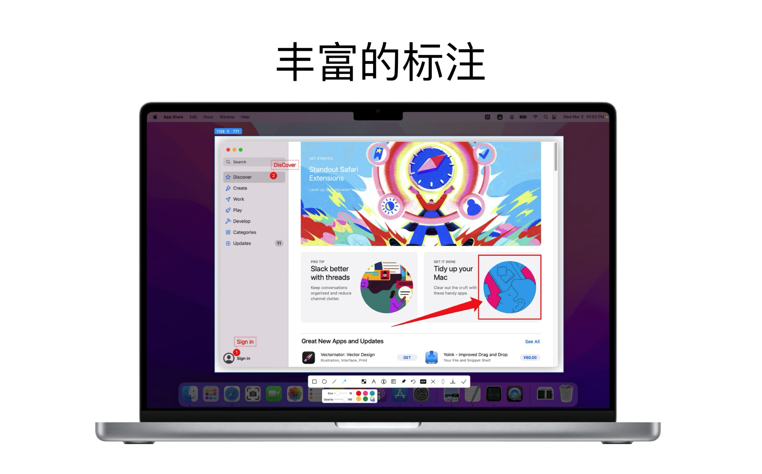 箭头、马赛克等标注工具,分享多款样式选择,让你的标注丰富多彩。