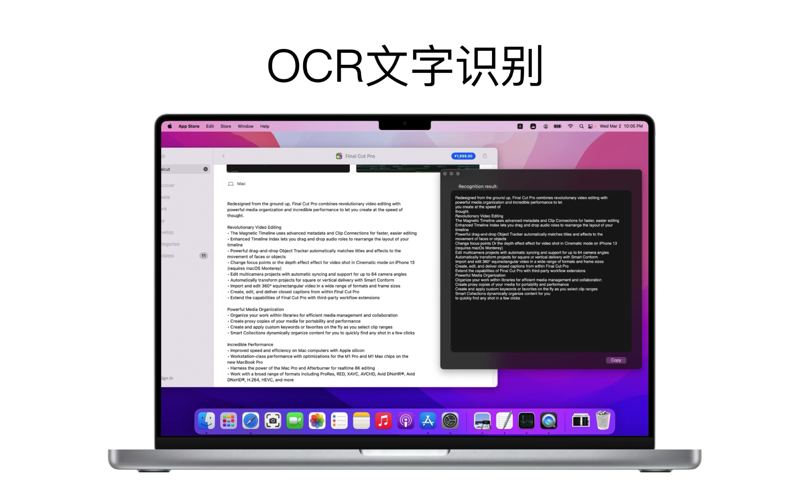 选择文件截图区域后,点按OCR按钮,进行文字识别,方便好用