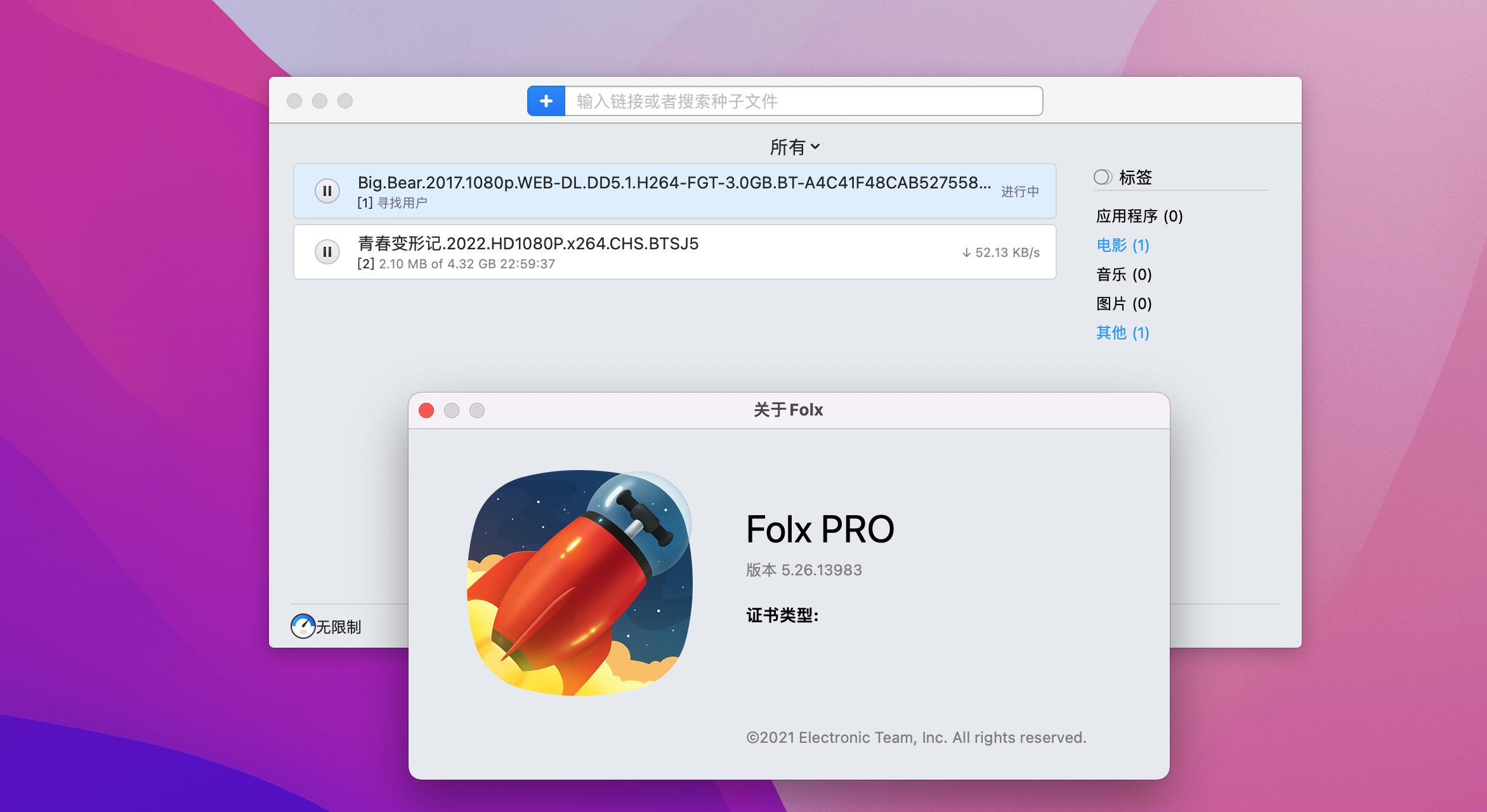 Folx Pro 5 是搜集到的macOS 最好用的下载管理器,界面很漂亮和原生应用差不多。它分享了方便的下载管理,可以多线程下载url资源,下载bt种子,还支持搜索各大bt种子网站的种子),另外还支持下载youtube视频。如果你在寻找一款好用的mac bt种子下载器,那快来试试 Folx 吧!