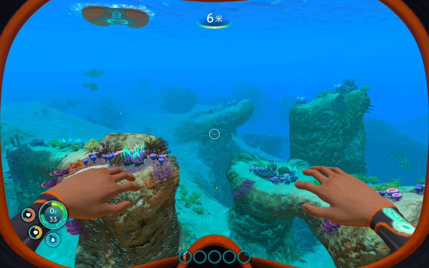 Subnautica 海床采用动态地图生成技术。你可以挖洞来躲避、存储战利品、或者缩短洞穴系统的路程。载具的碰撞,甚至是爆炸生物的冲击波,都将改变世界的外观。