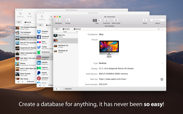 iDatabase可让您列出Mac中的所有内容!将数据存储在14种不同类型的字段中。