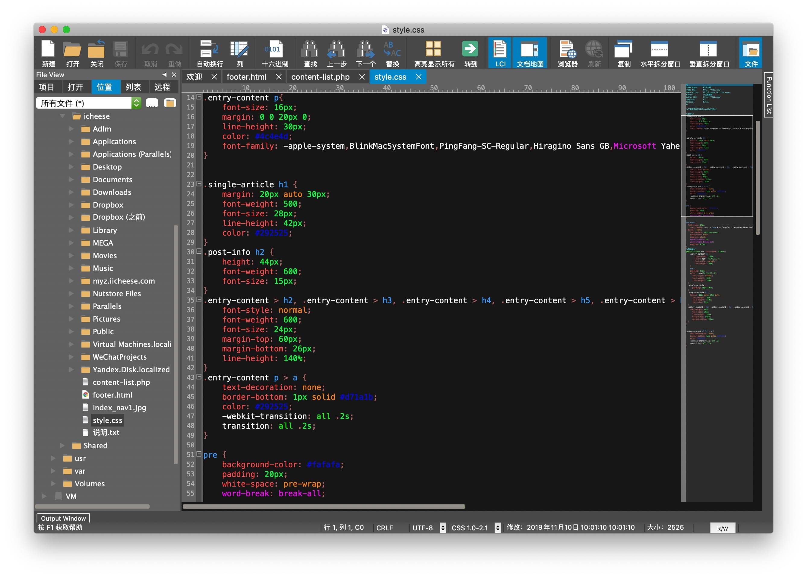 UE Mac 分享了大量的工具,非常适合从基本的文本编辑,到 C,Objective C,Javascript,XML,PHP,Perl,Python 等语言的全面开发。