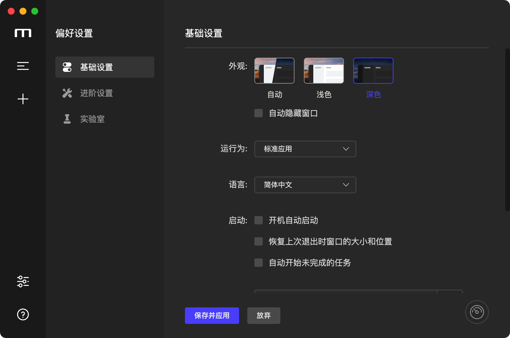 - 新特性:偏好设置—实验室适配深色模式