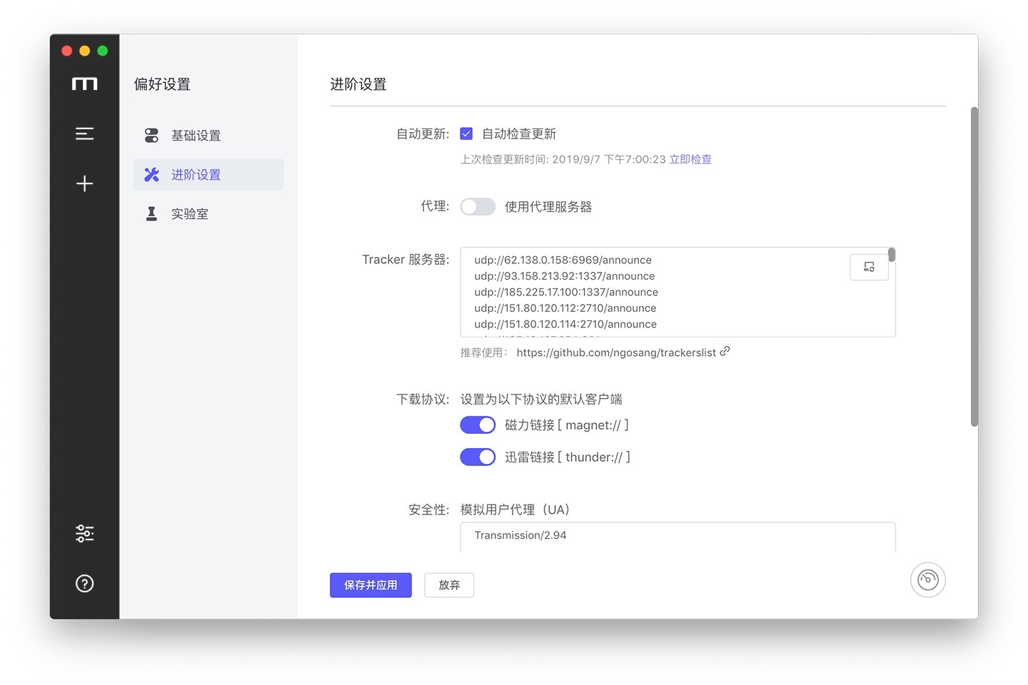 - 新特性:偏好设置——BT设置 将磁力链接保存为种子文件