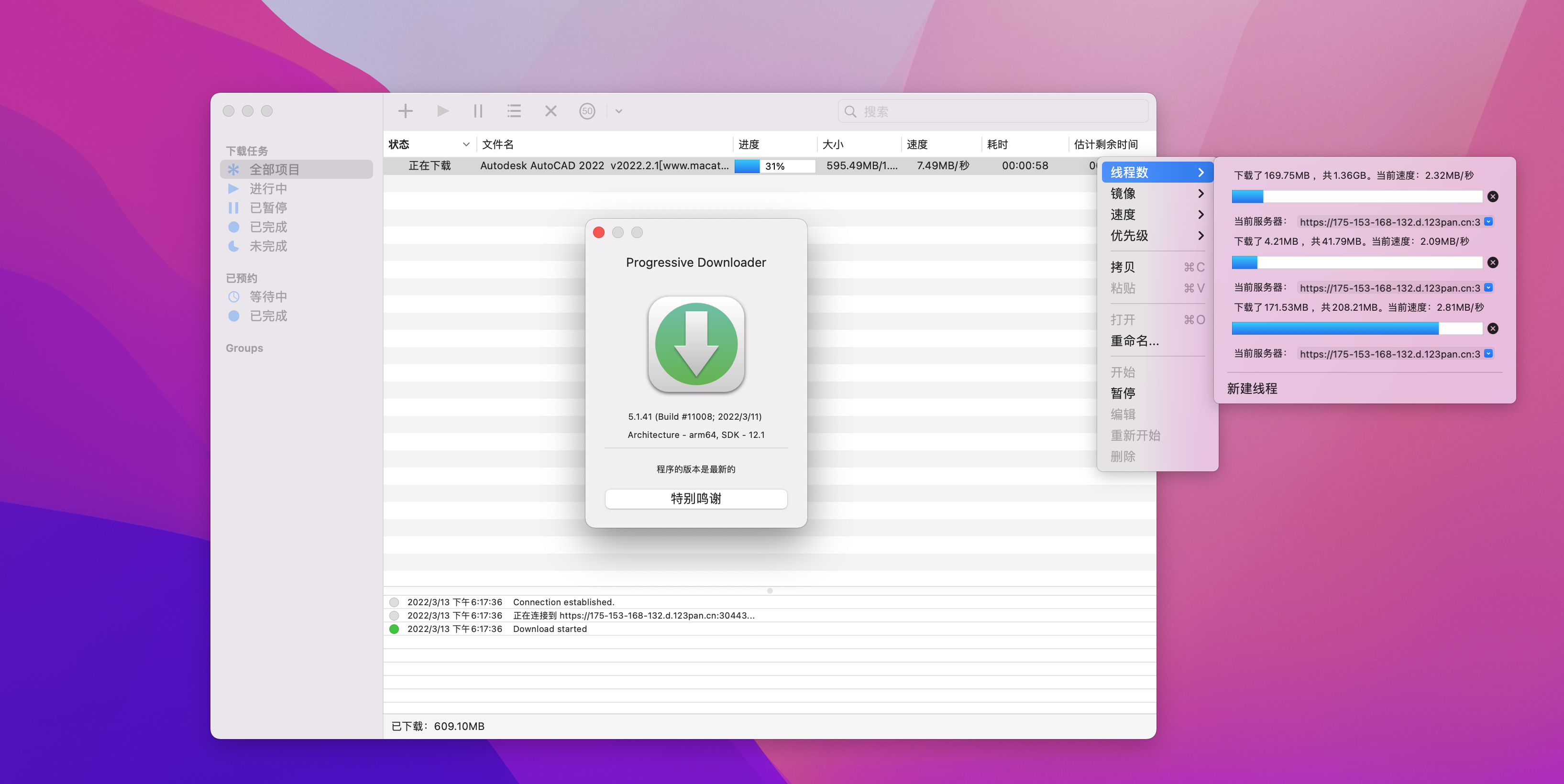 Progressive Downloader mac版是搜集到的Macos上一款mac下载软件,Progressive Downloader下载不会出现限速和广告等情况,支持断点续传、多线程下载、内建镜像搜索、HTTP/SSH 等功能,还支持支持AppleScript和Automator脚本。