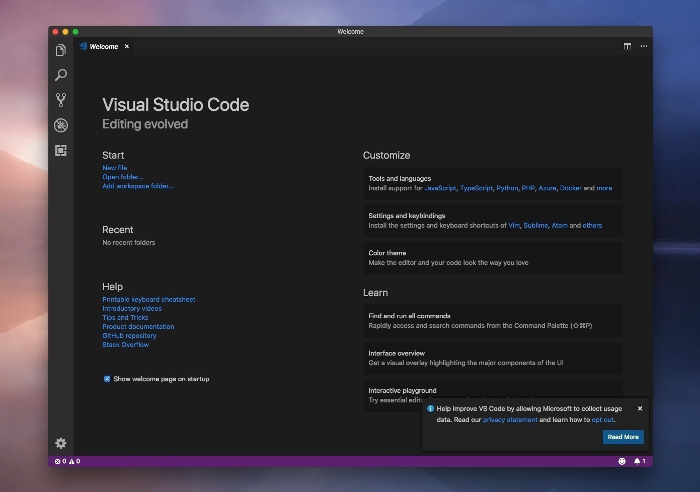 Visual Studio Code 是微软首次为开发者分享“跨平台”的代码编辑器。VSC 的编辑器界面依然是微软经典的 VS 风格,对于常接触的人来说会很亲切。