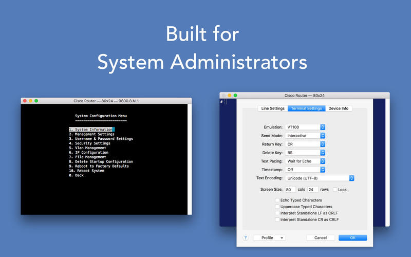没有更简单的方法将你的Mac直接连接到路由器、防火墙、PBX系统、服务器等等。Sierra支持在Cisco和其他网络设备中访问特殊特性所需的中断,并允许固件和配置上传。