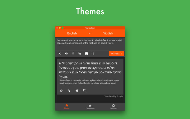 Translatium 支持150多种语言间实时翻译,还支持语音输入识别以及语音输出,支持OCR识别,支持手写输入识别等等功能。包含词典功能,可以自定义词典界面主题和颜色。