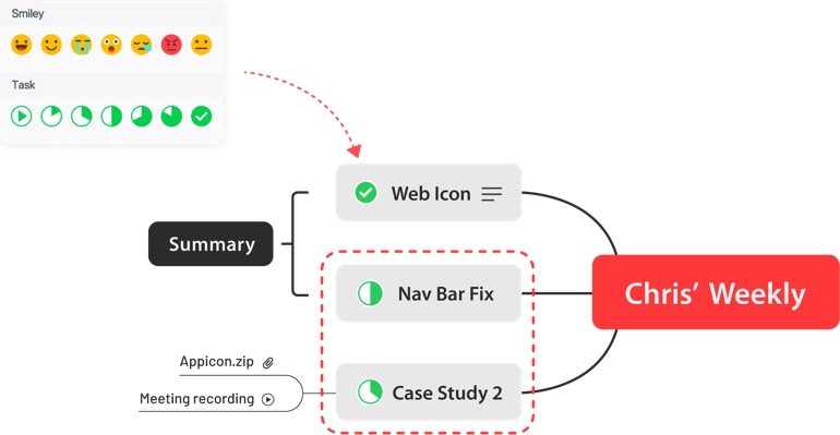 另外,XMind ZEN 还内置了丰富的主题元素,可以通过添加标记、标签、超链接、附件、主题链接、笔记等丰富的主题元素来表达多元的信息结构,使用起来非常方便。