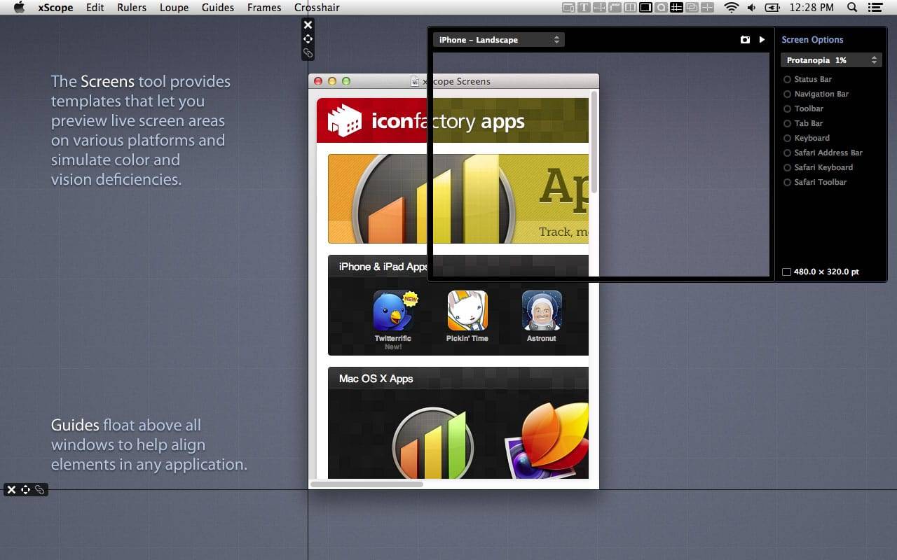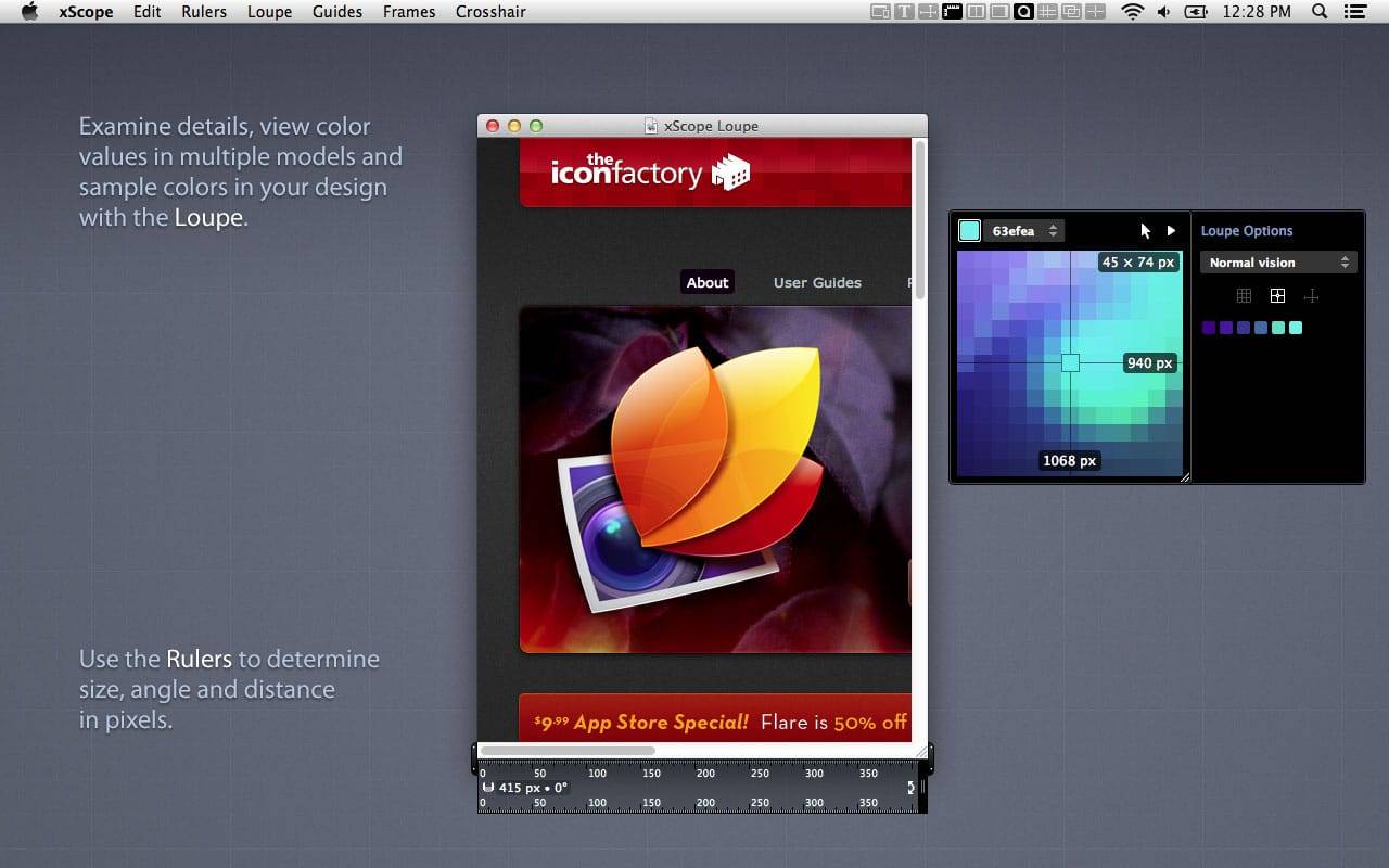 xScope是一组功能强大的工具,非常适合测量,检查和测试屏幕上的图形和布局。它的工具浮在桌面窗口的上方,可以通过工具栏,菜单栏和/或热键进行访问。