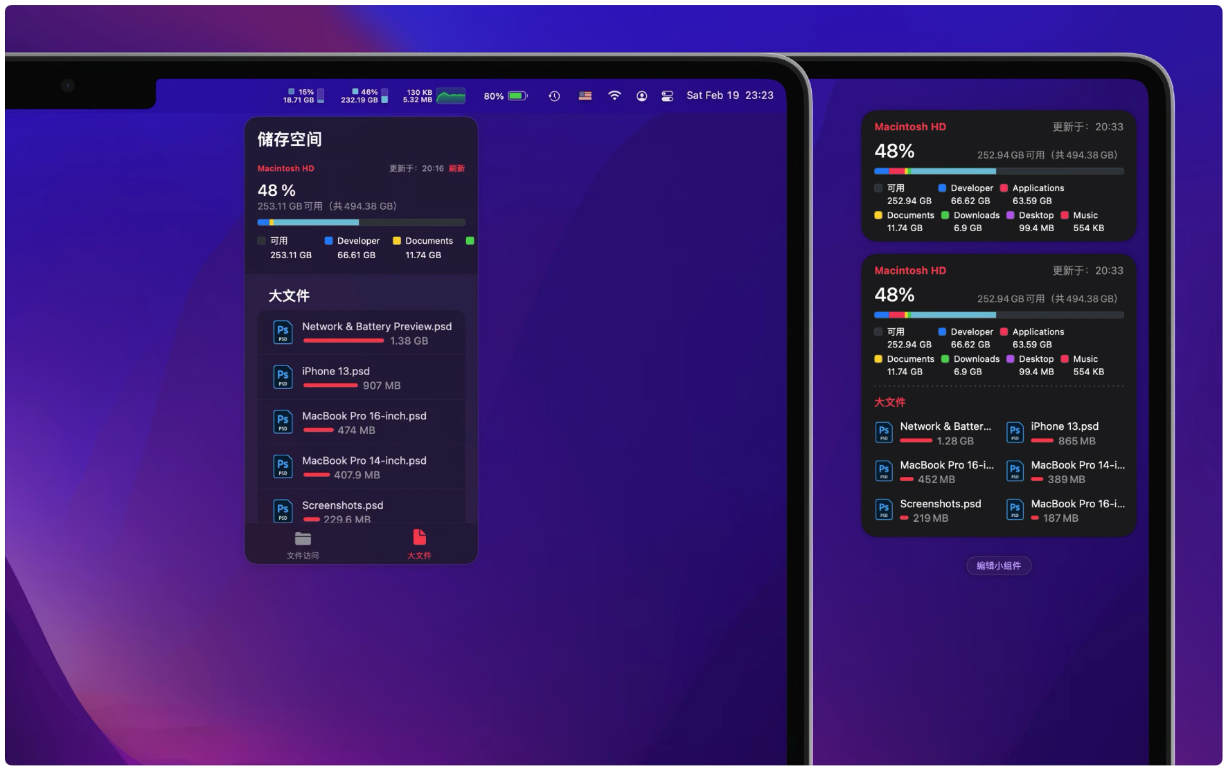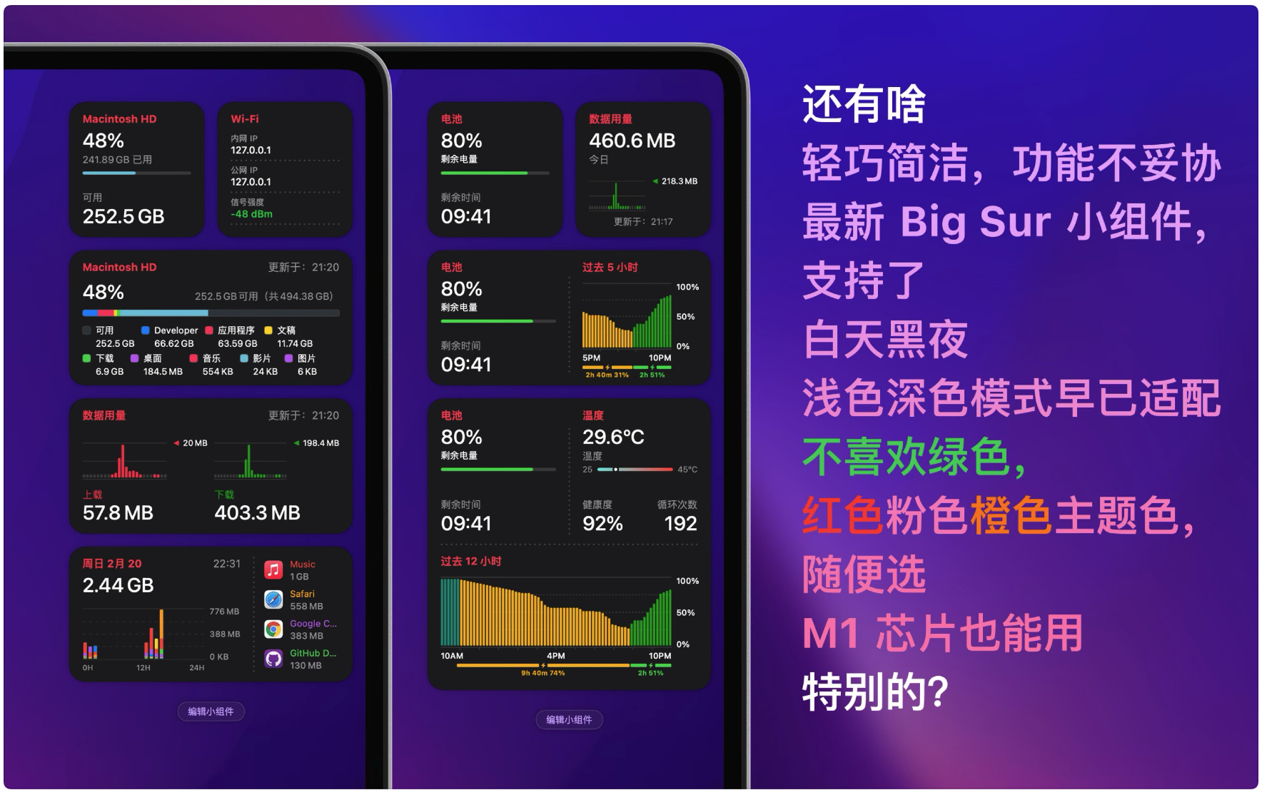 支持 Today 小组件和 Big Sur 小组件。