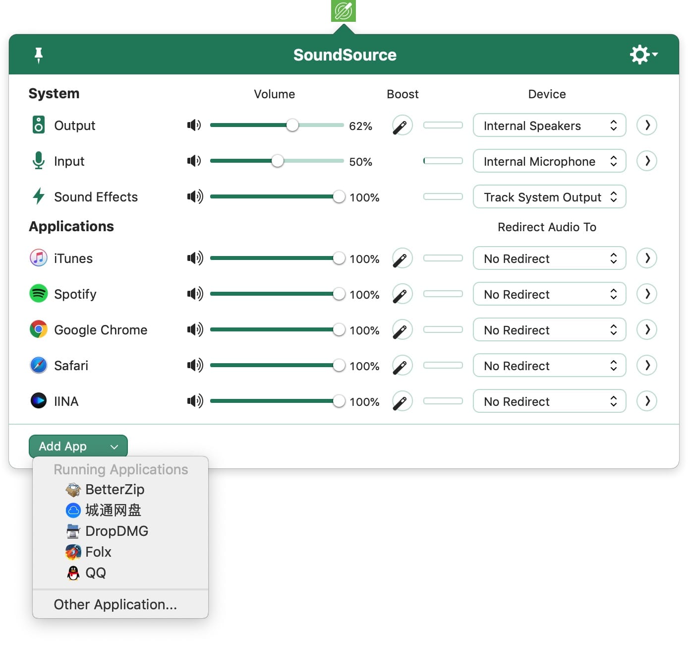 SoundSource 是搜集到的一款Mac上优秀的音频输入/输出增强管理工具,可以在菜单栏快速的调整电脑的音频设置,包括输入设备、输出设备,还支持单独控制不同应用的音量大小,音频输出重定向、音效增强等等,非常不错的一款音频增强控制工具!