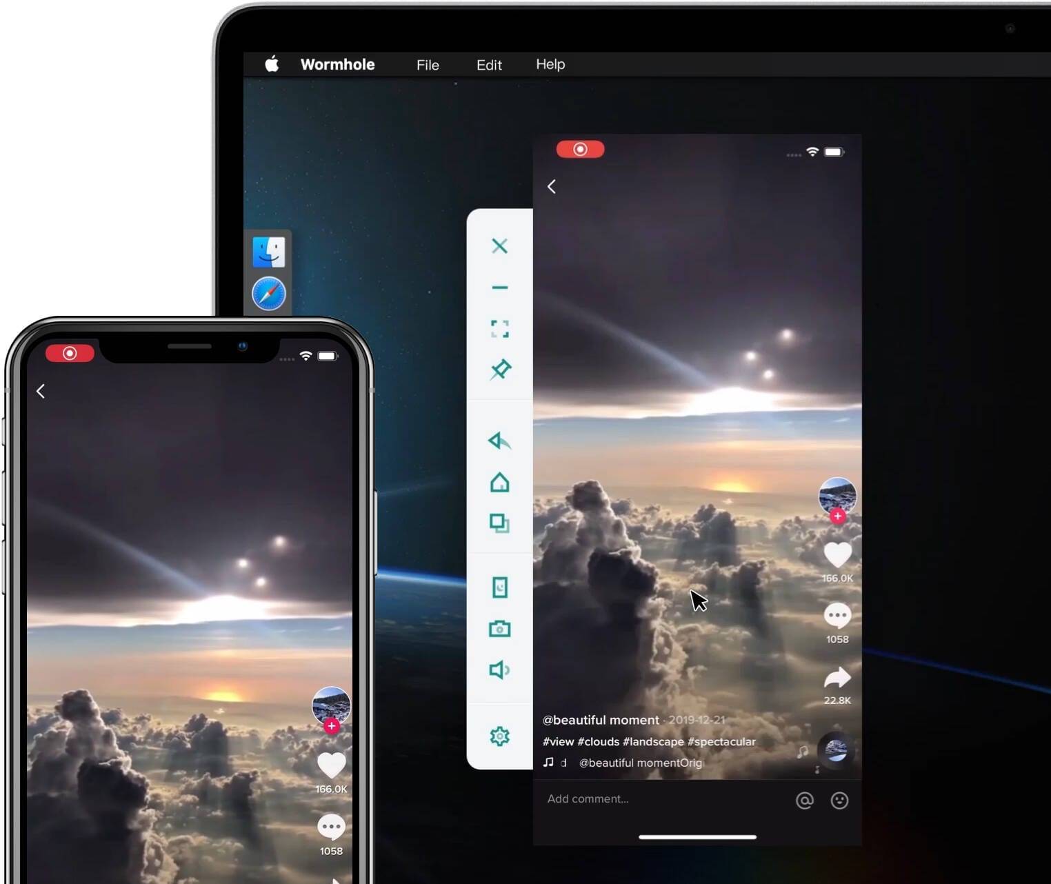 「虫洞」可以让你在电脑上控制iOS和Android设备,不过目前安卓版免费、苹果版收费。你可以使用它在你的Mac上刷抖音、玩王者荣耀、刷微博等等。