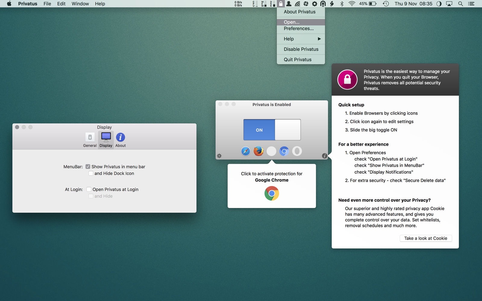 经过快速入门设置,Privatus将保护您免受跟踪和在线分析,无需任何进一步的互动。