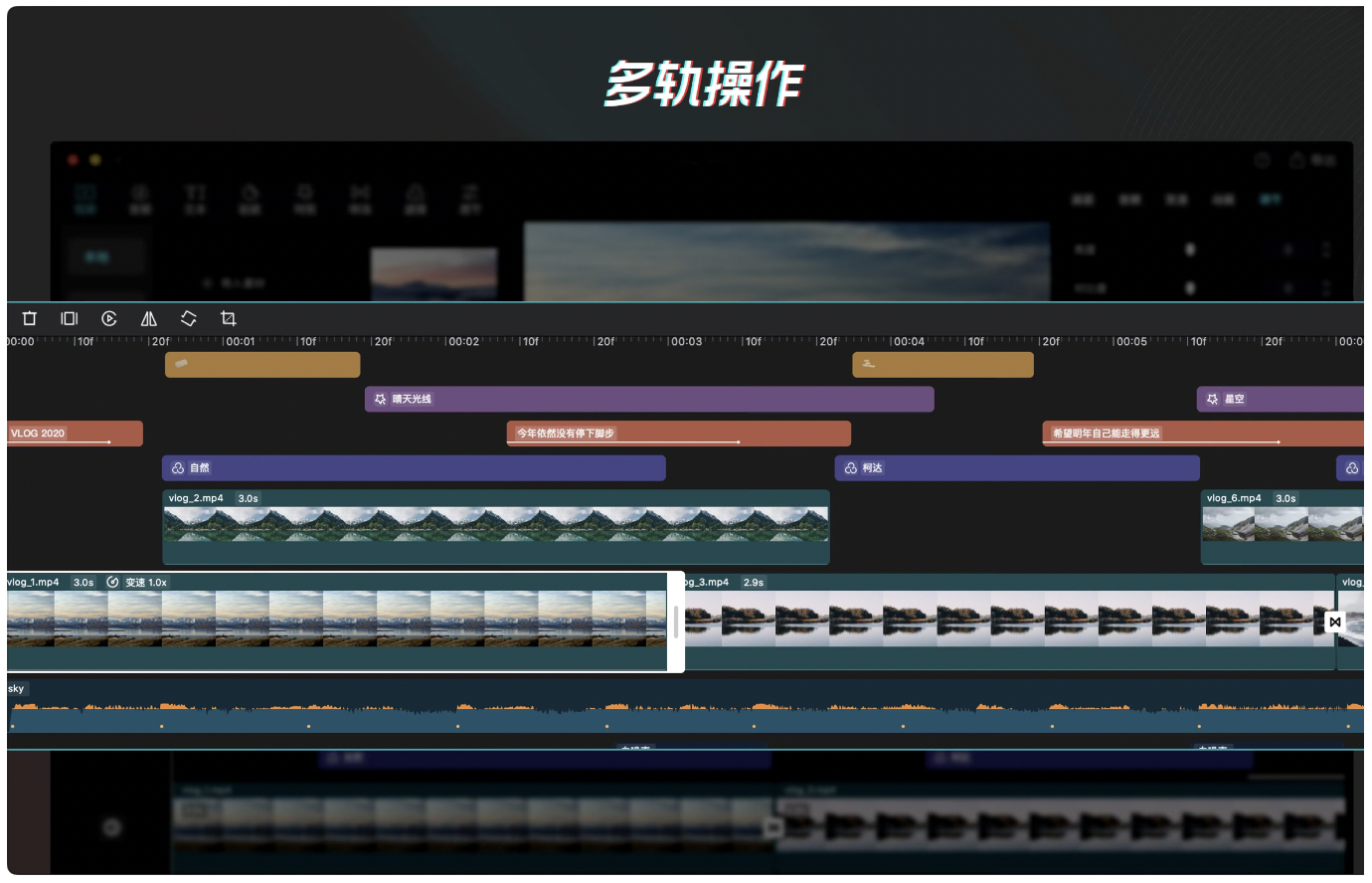 - 支持多视频轨&无限音频轨编辑,轻松处理复杂编辑项目;
