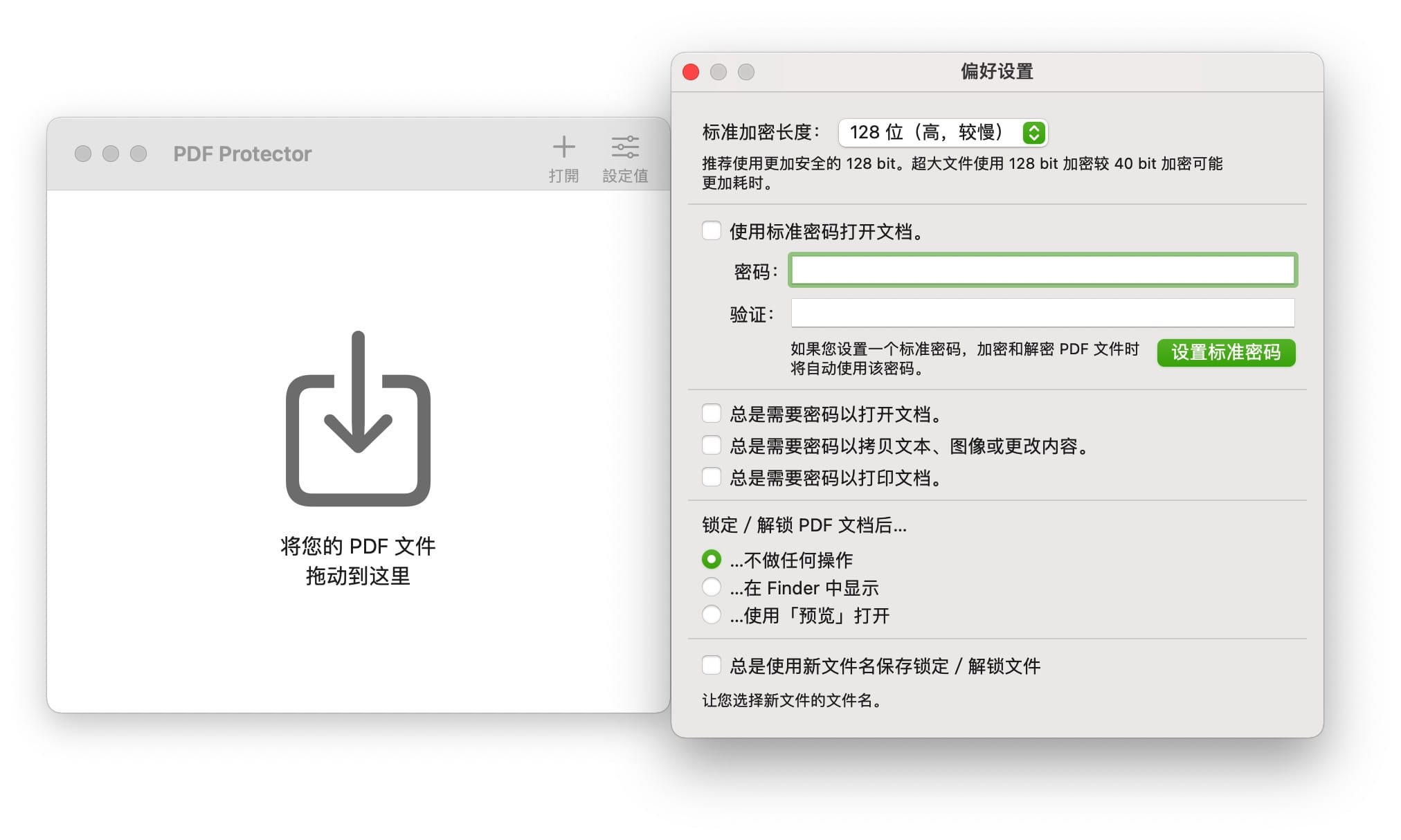 PDF Protector 是搜集到的一款用于加密或解密PDF文档的Mac工具。使用非常简单,设置密码,然后让PDF Protector对您的文档进行加密以阻止其他人打开它。