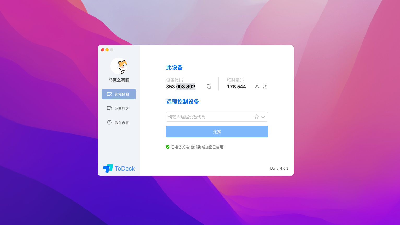 ToDesk for Mac 是一款免费而流畅的远程协助软件。ToDesk 支持 1080P 高清屏幕控制以及文件传输。通过多区域机房、G级宽带服务器加速以确保您每一次的远程访问稳定、流畅。在安全方面,通讯数据使用 端到端加密,连接密码仅存于您的设备,ToDesk 官方也无法窥探您的桌面以确保您的每次连接都是安全可靠的。
