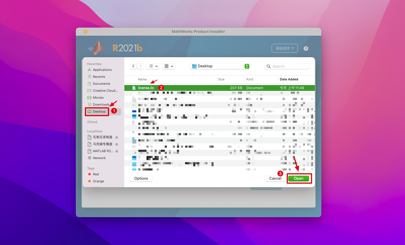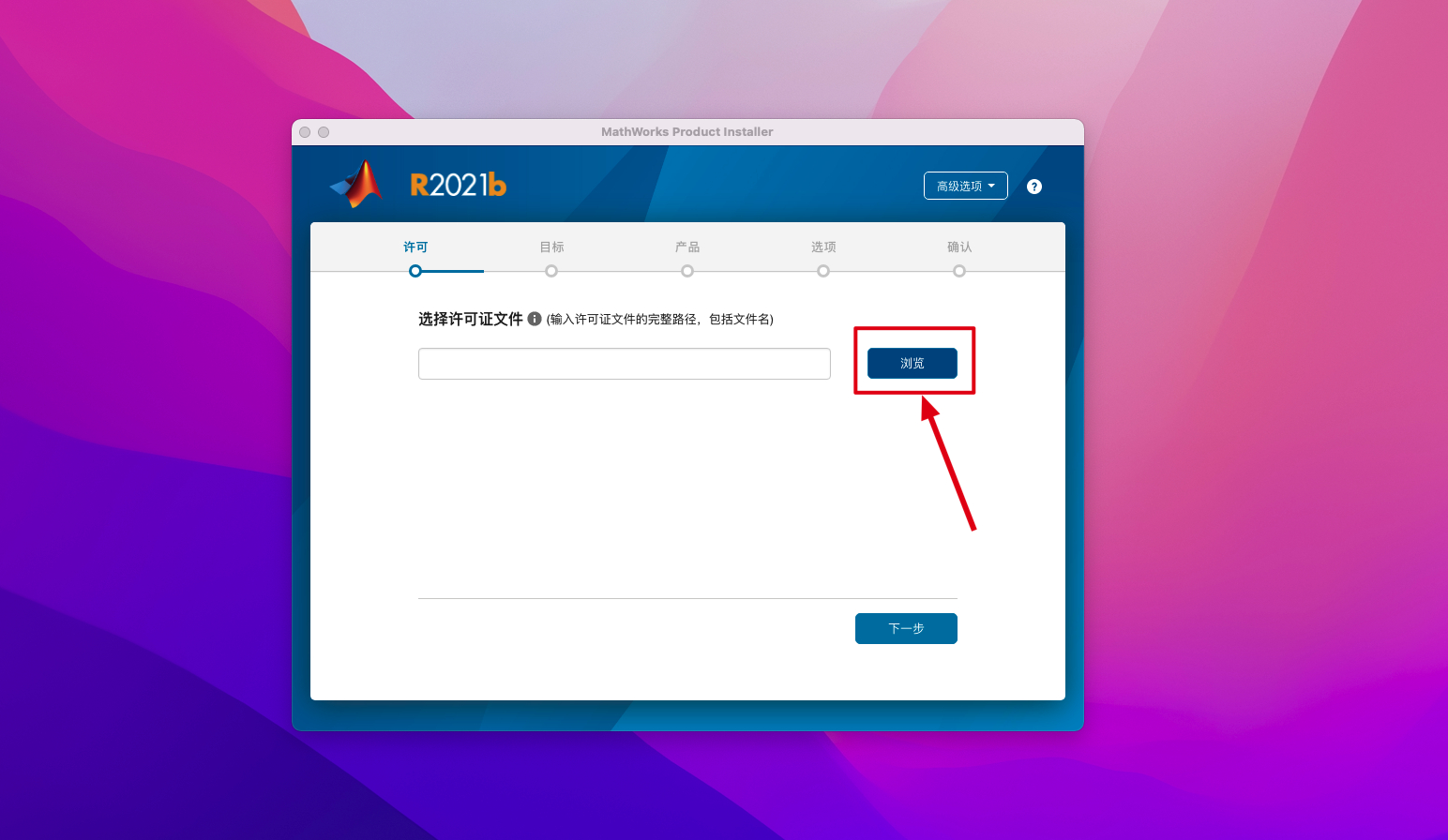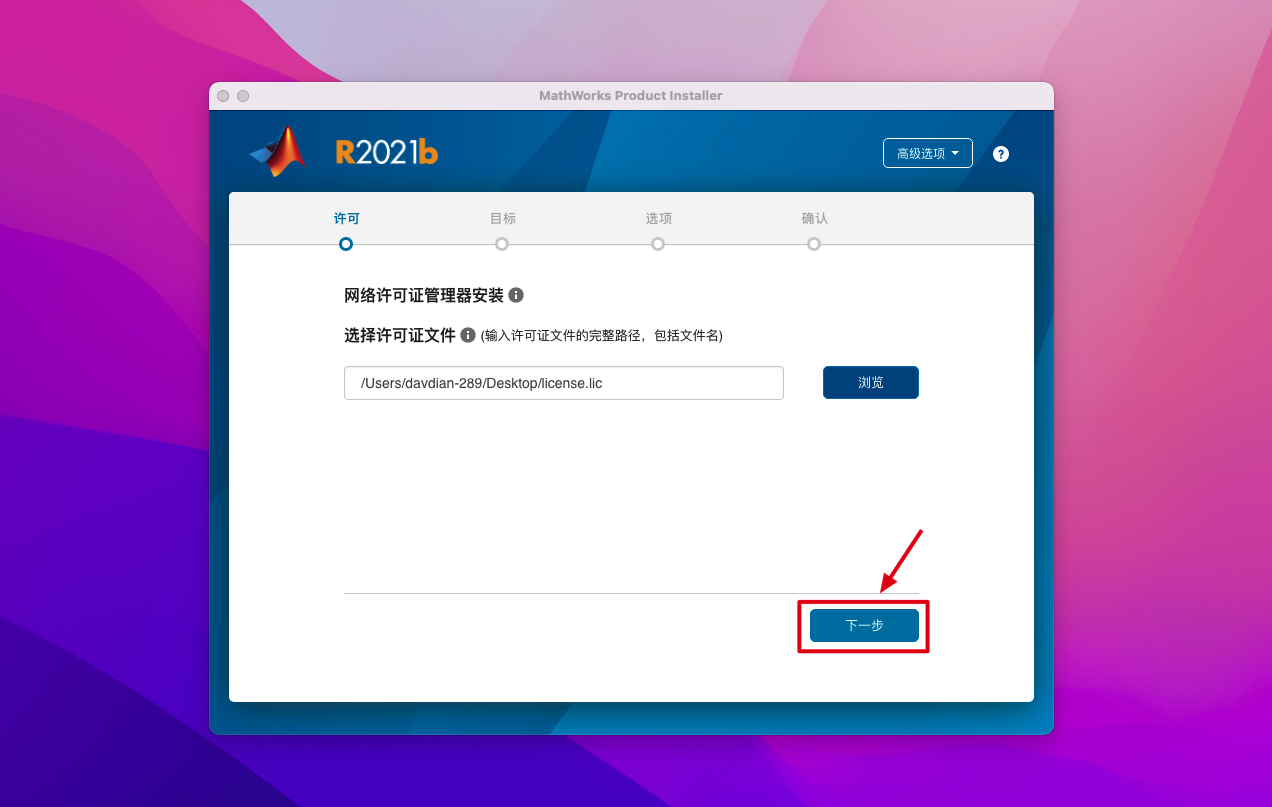6.点击浏览,选择桌面上的 license.lic,点击 Open