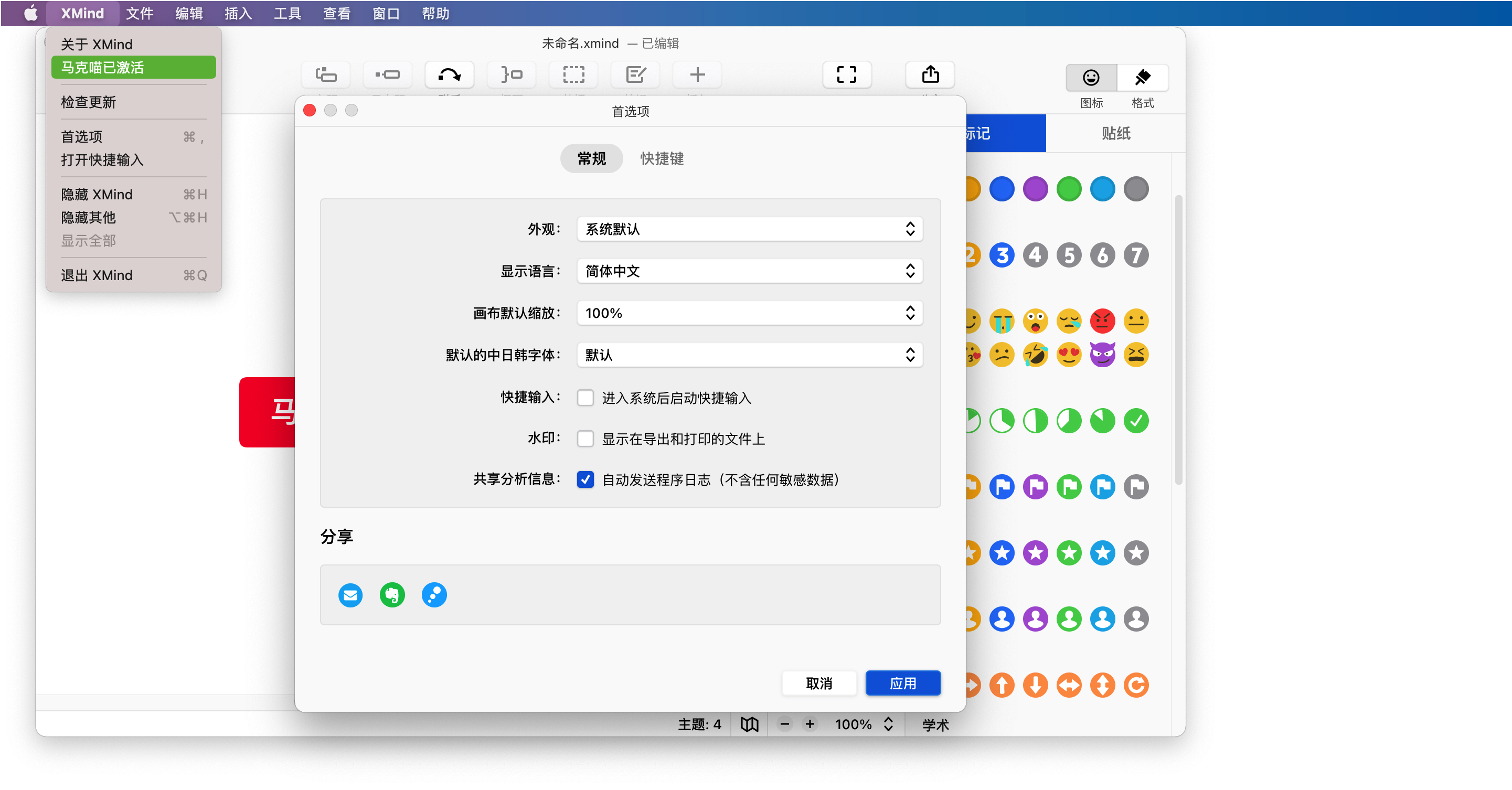 XMind 2020 for Mac 中文破解版是搜集到的由XMind 8团队重新打造的一款思维导图软件,全新 Snowbrush 引擎,提升了思维导图的展示效果,丰富了绘图的元素,包括最时尚的主题和字体设计,备注支持 Markdown 编辑模式,设计思维导图时界面更清爽简约。配合 XMind Cloud 工作更高效,而且可以与 Office、PDF、印象笔记协作工作。