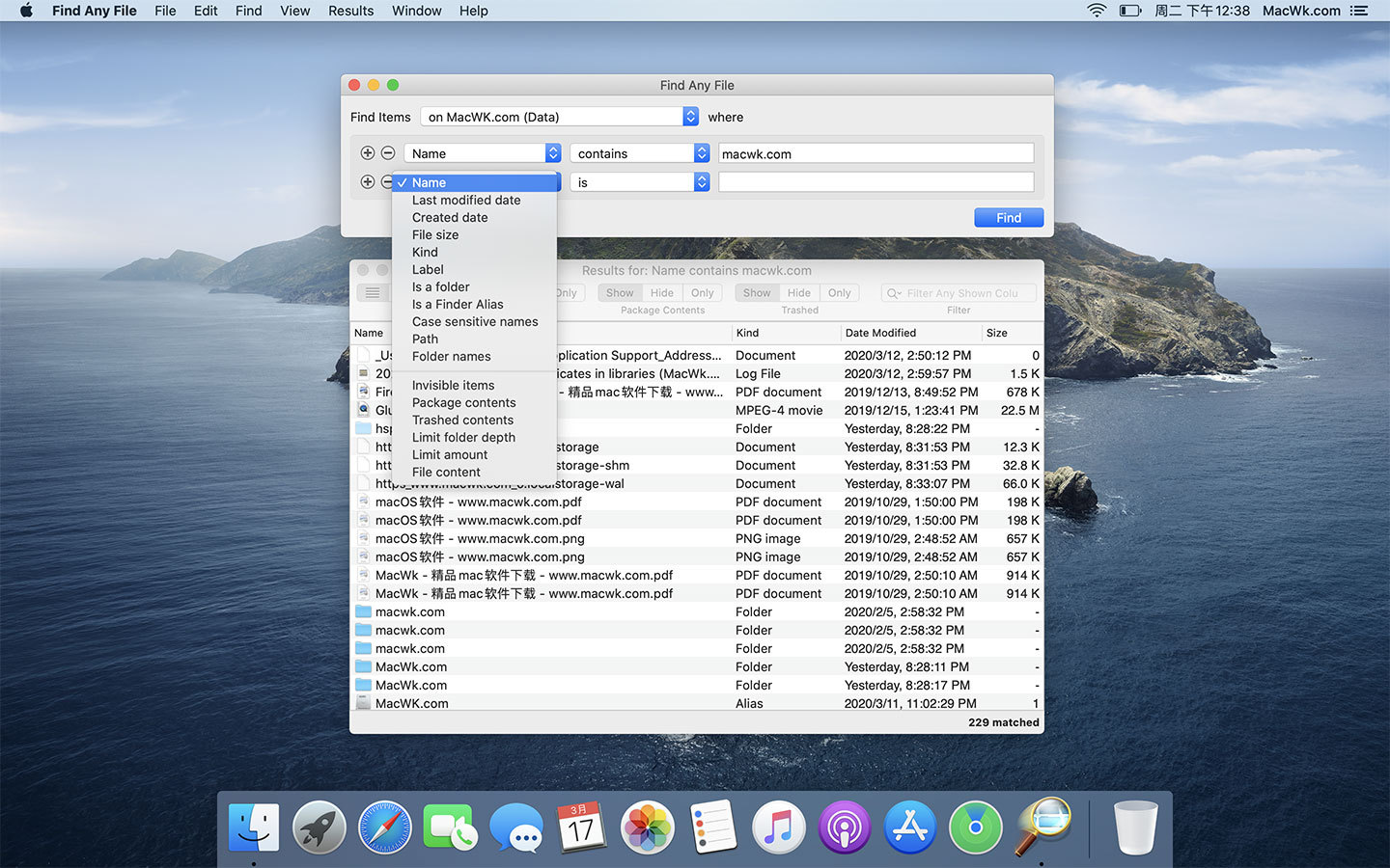 Find Any File (FAF) 是一款强大的Mac多条件文件查找工具。与 Spotlight 相反,它不使用数据库,而是使用文件系统驱动程序的快速搜索操作。这使您可以搜索文件属性,例如名称,日期,大小,种类等,可以找到Spotlight无法找到的文件,例如,捆绑包和软件包内的文件以及通常被Spotlight搜索排除的文件夹内的文件。