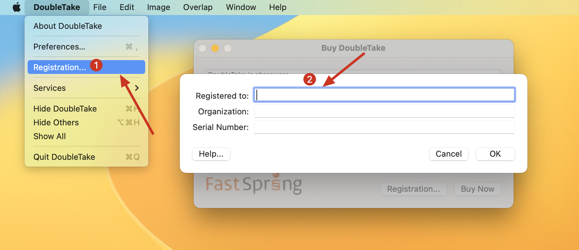 打开doubletake软件,在左上角菜单栏点击打开Registration,这里直接点击registration,输入包里的注册码即可!