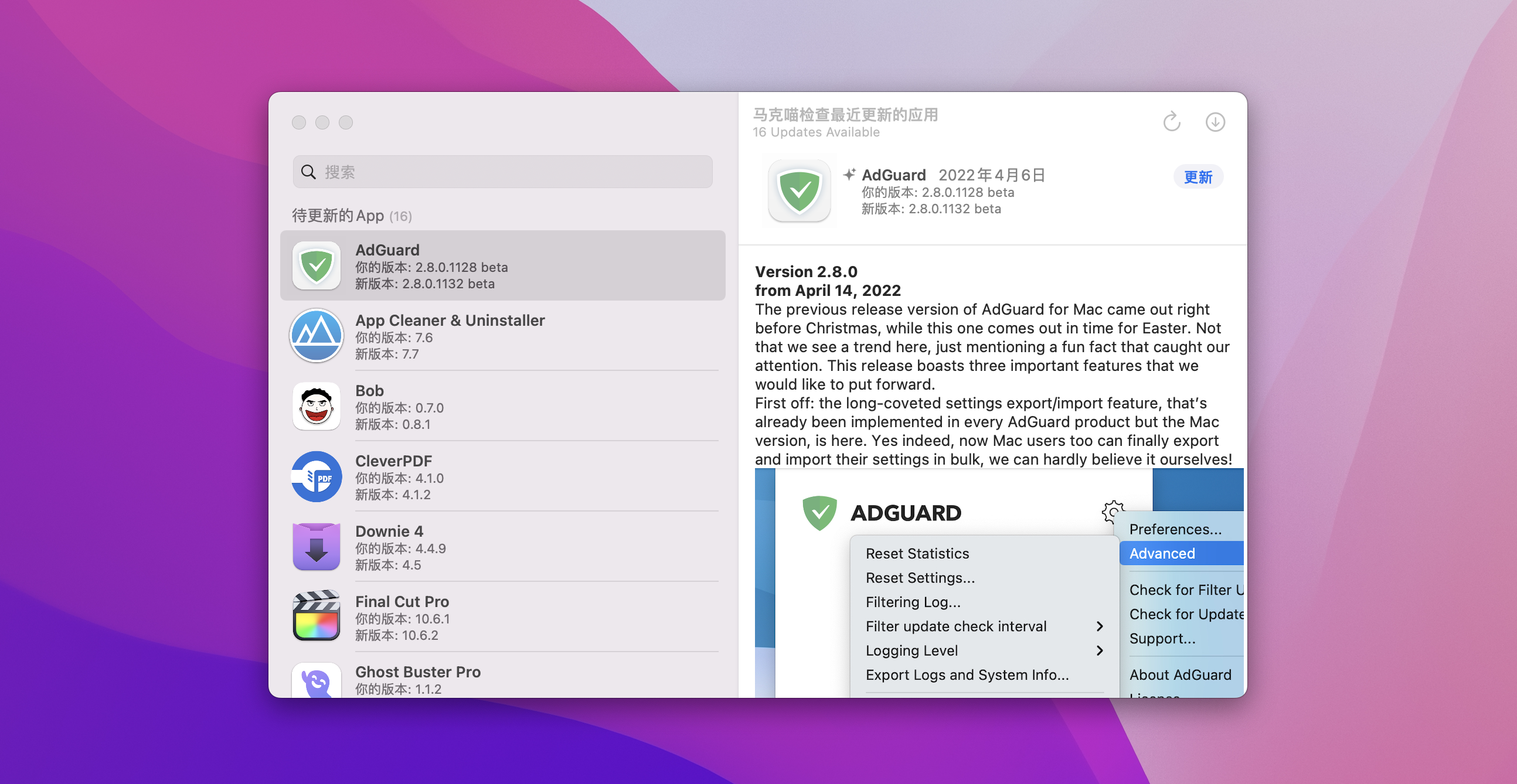 适用于 macOS 的小型实用程序应用程序,可确保您了解所使用应用程序的所有最新更新。