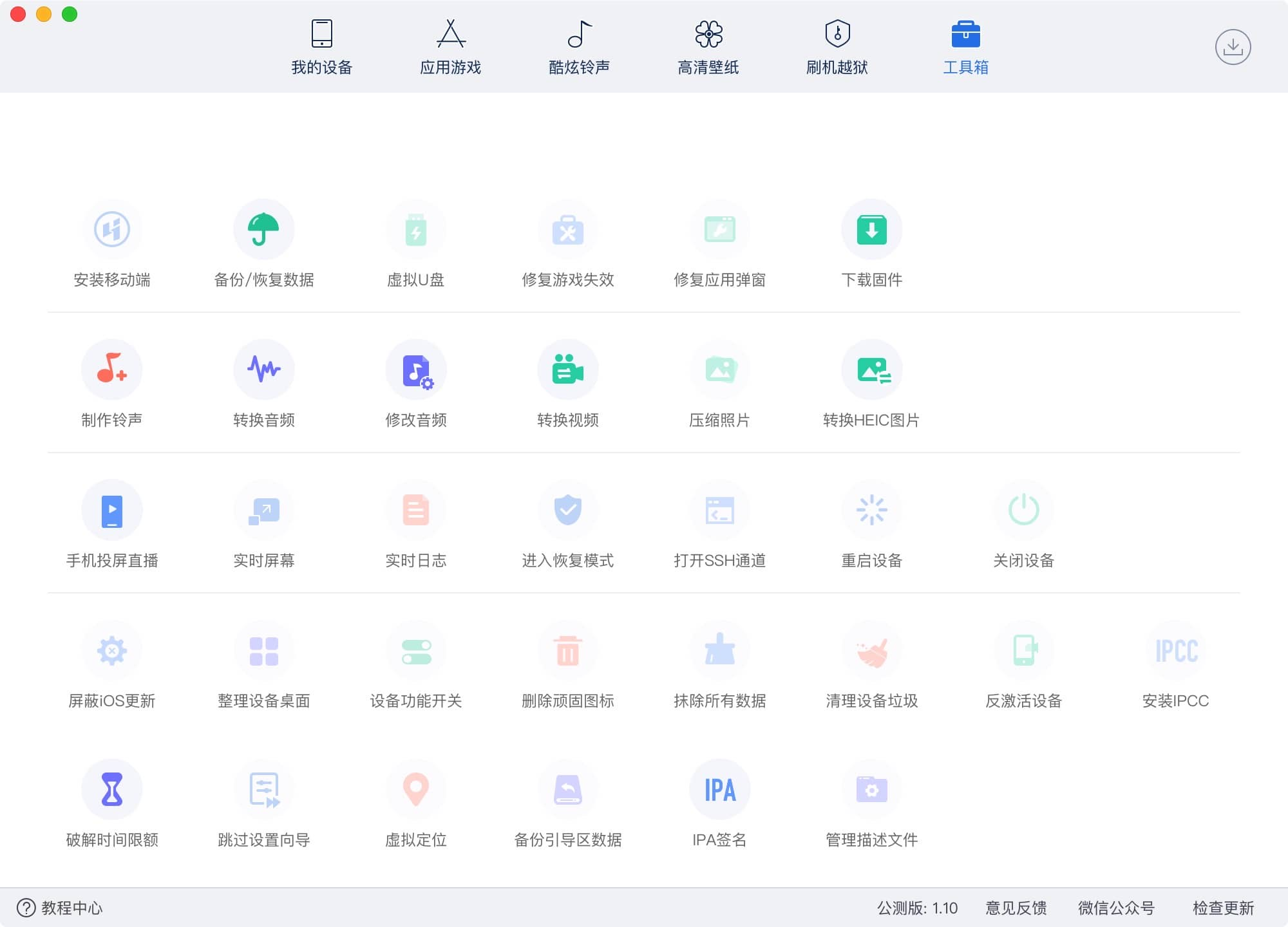 爱思助手 for mac 的工具箱十分丰富,具有有以下功能